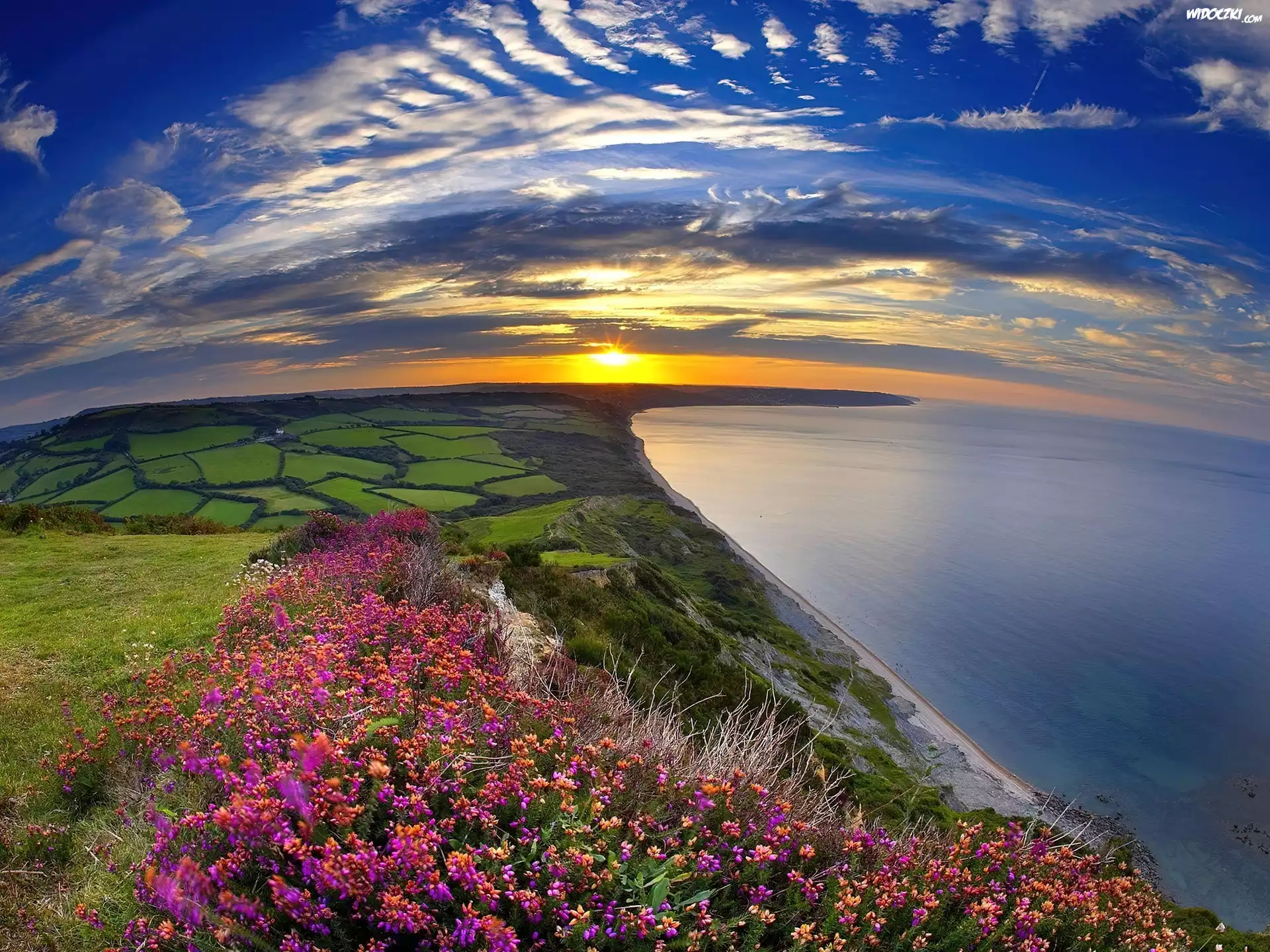Zdjęcia, Morze, Wybrzeże, Niebo, Łąka