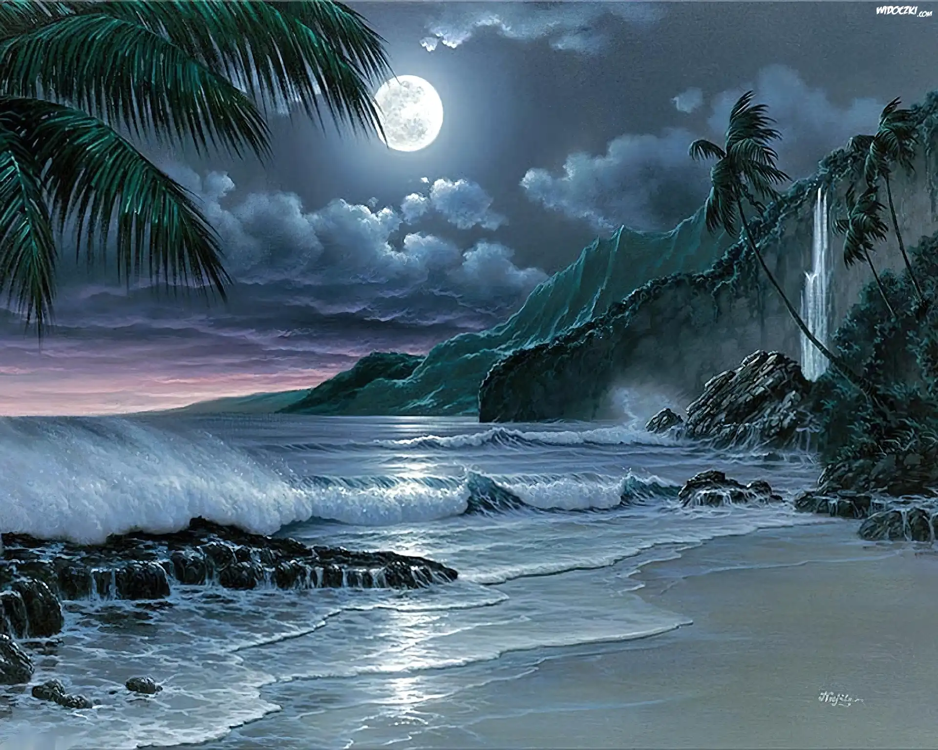 Zdjęcia, Morze, Plaża, Góry, Noc, Księżyc