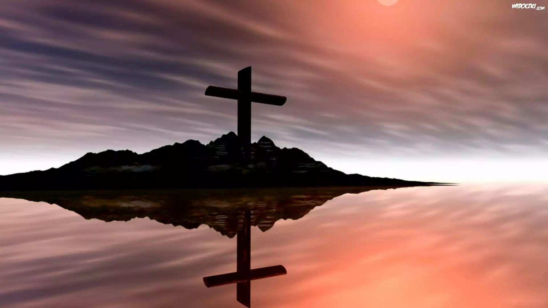 Morze, Wyspa, Krzyż, Odbicie, Lustrzane