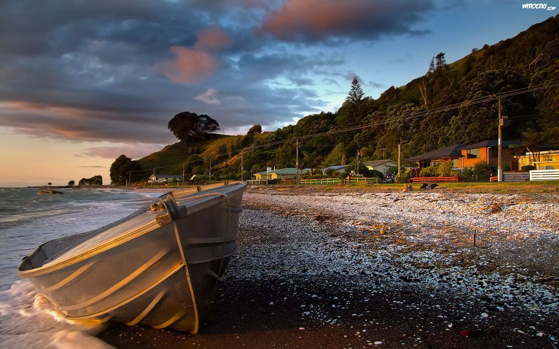 Zdjęcia, Morze, Brzeg, Łódka, Domy