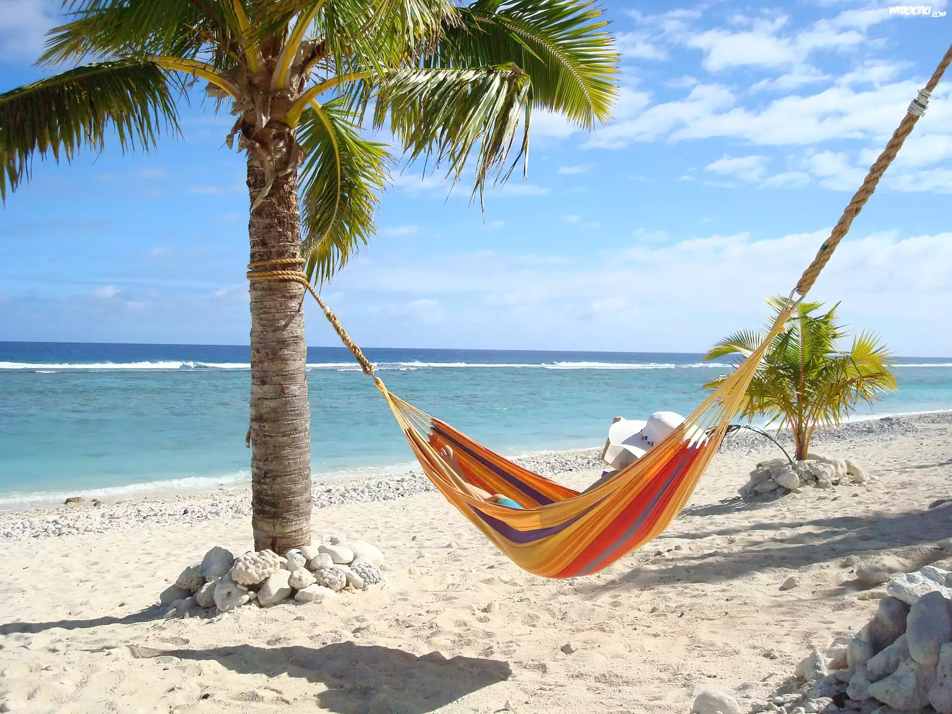 Zdjęcia, Morze, Plaża, Palma, Hamak