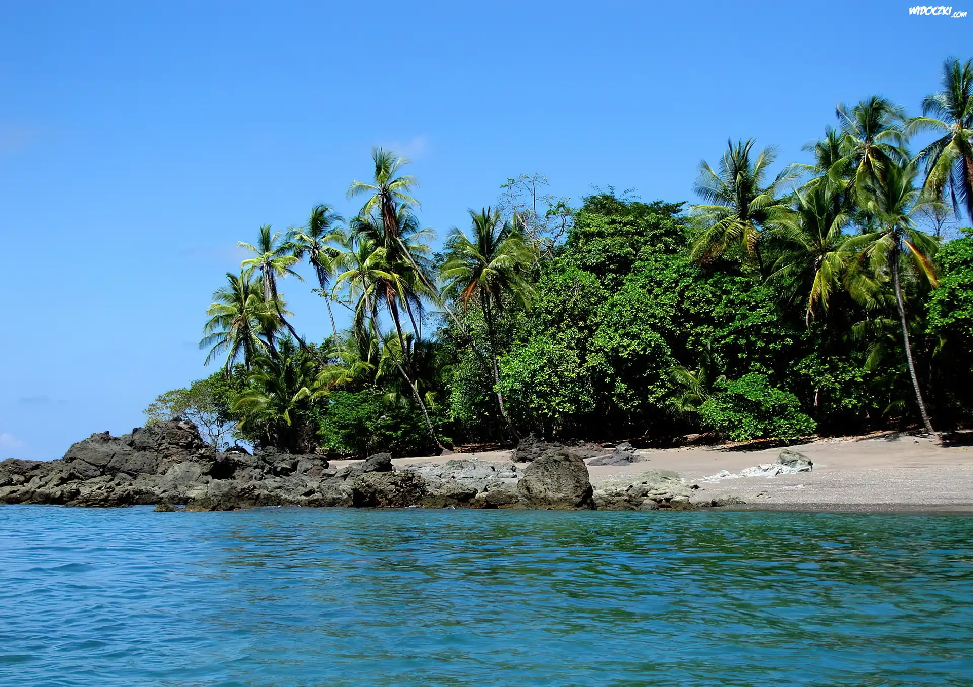 Zdjęcia, Morze, Kamienie, Palmy, Kostaryka