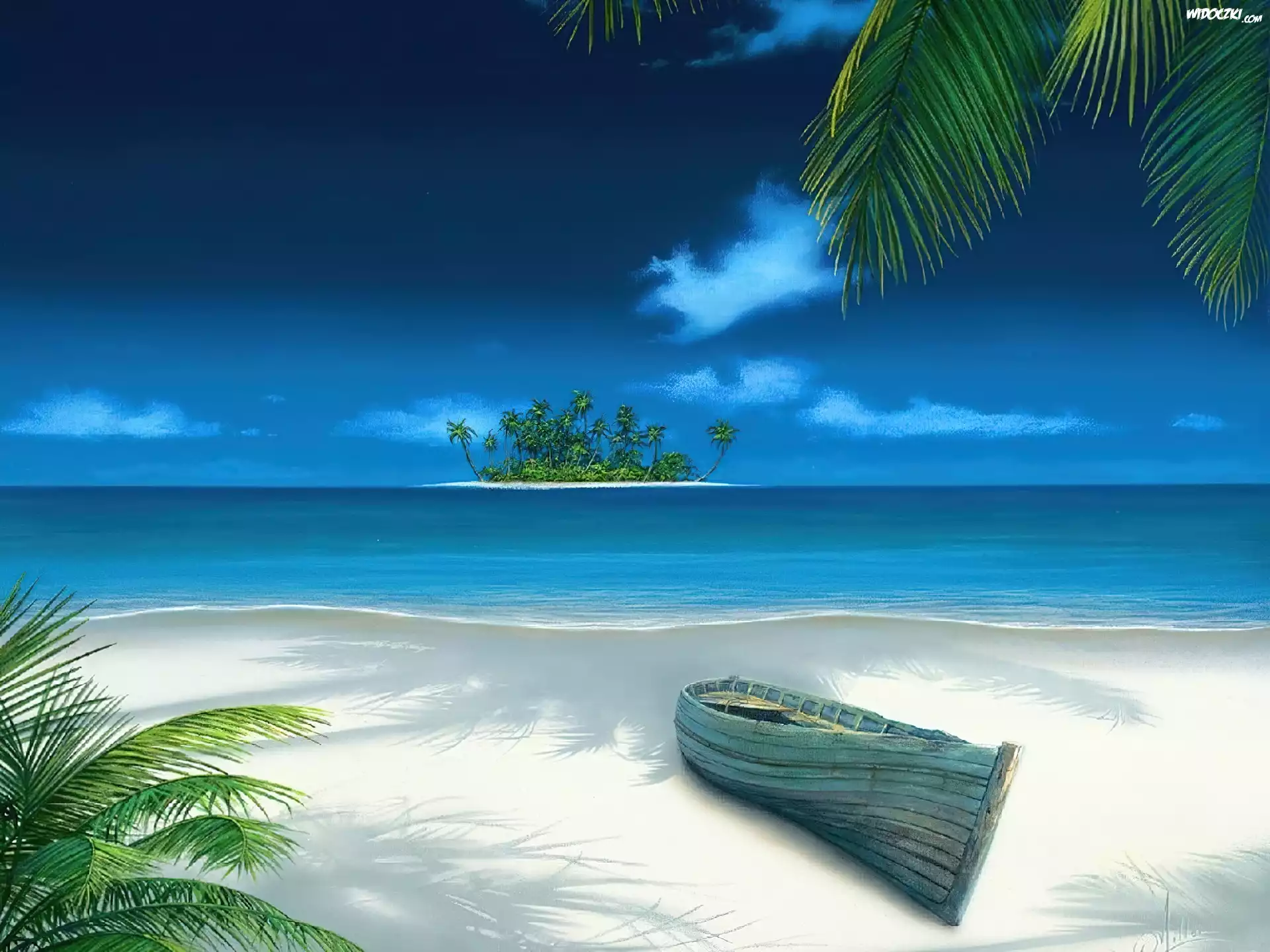 Zdjęcia, Morze, Łódka, Palmy, Wyspa
