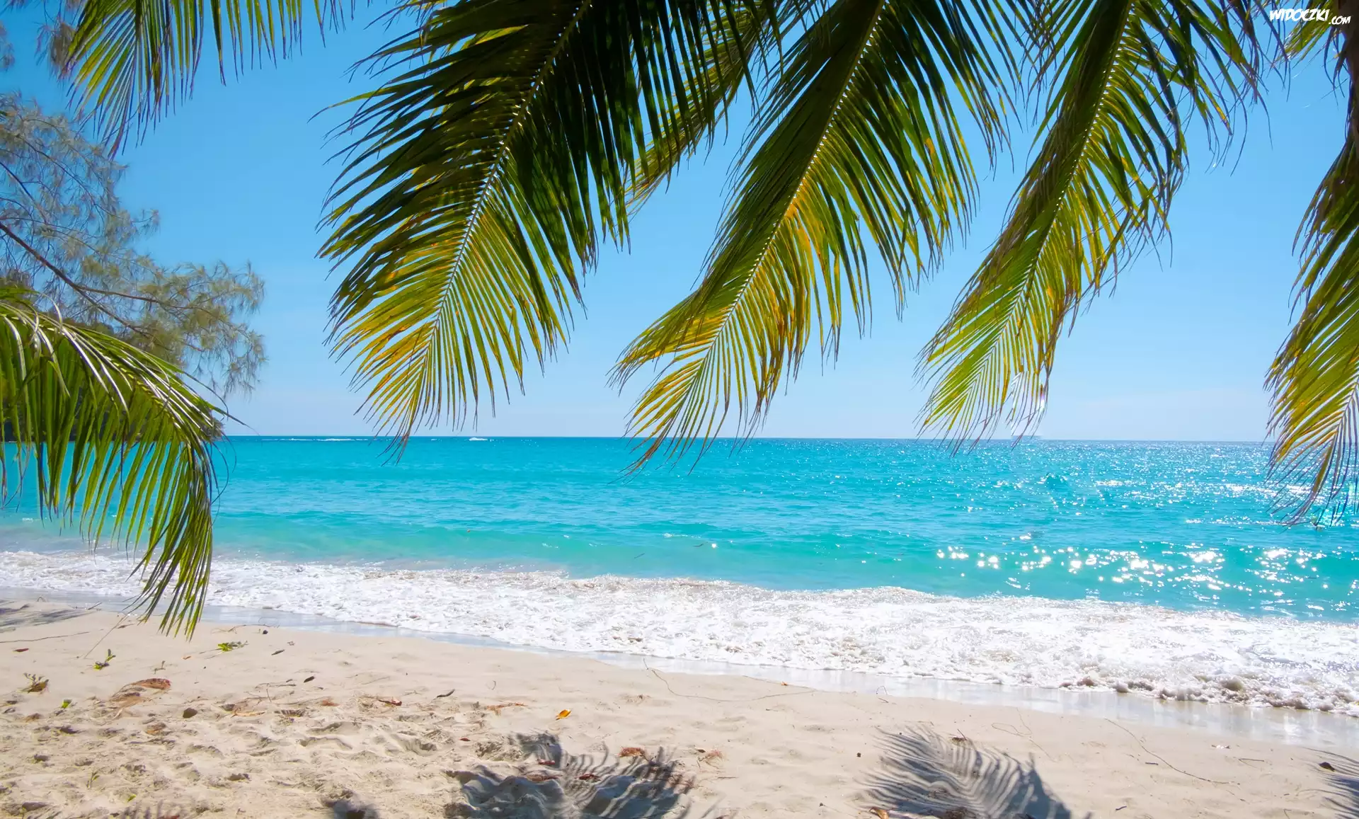 Zdjęcia, Palmy, Liście, Plaża, Morze