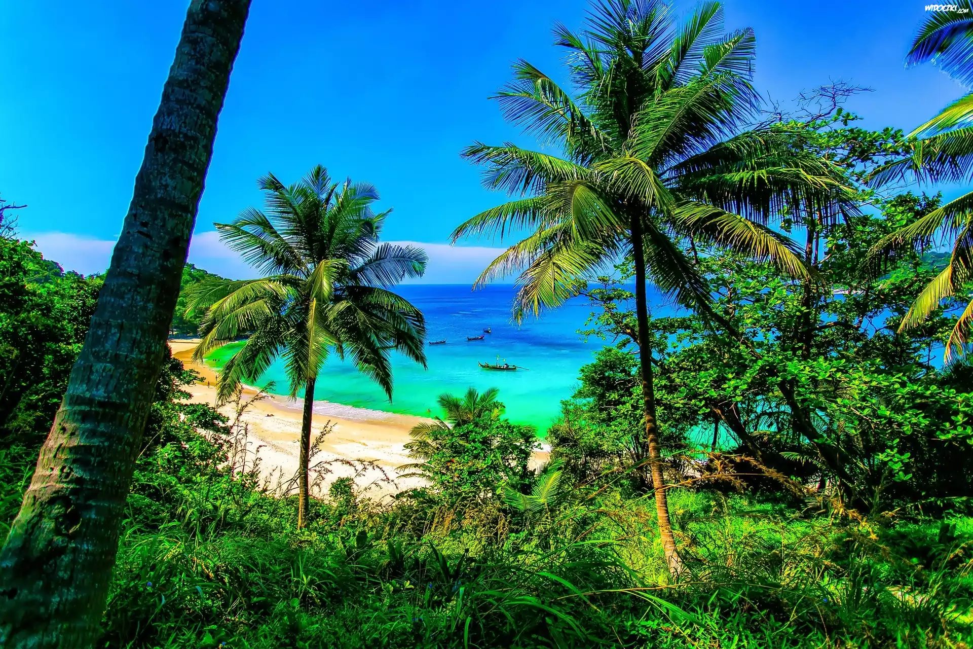 Zdjęcia, Morze, Plaża, Palmy, Tajlandia