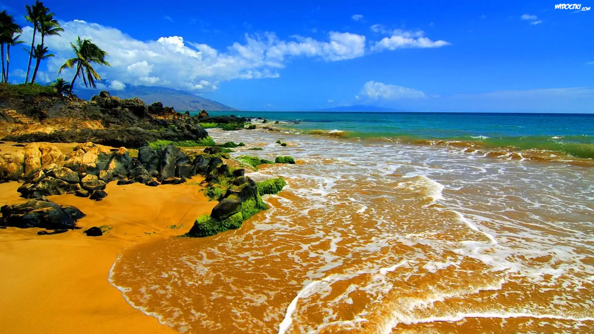 Zdjęcia, Morze, Plaża, Palmy, Wybrzeże