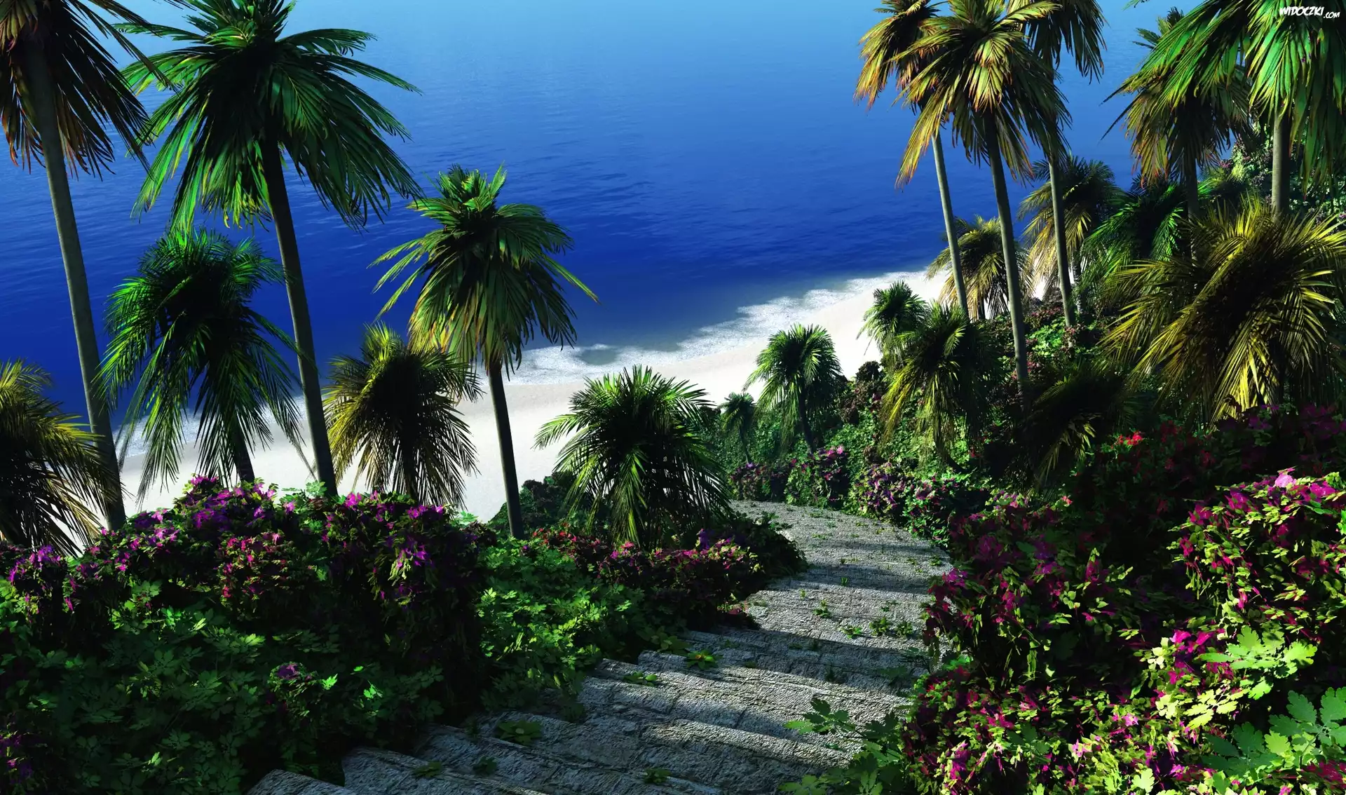 Zdjęcia, Morze, Zielone, Palmy, Schody