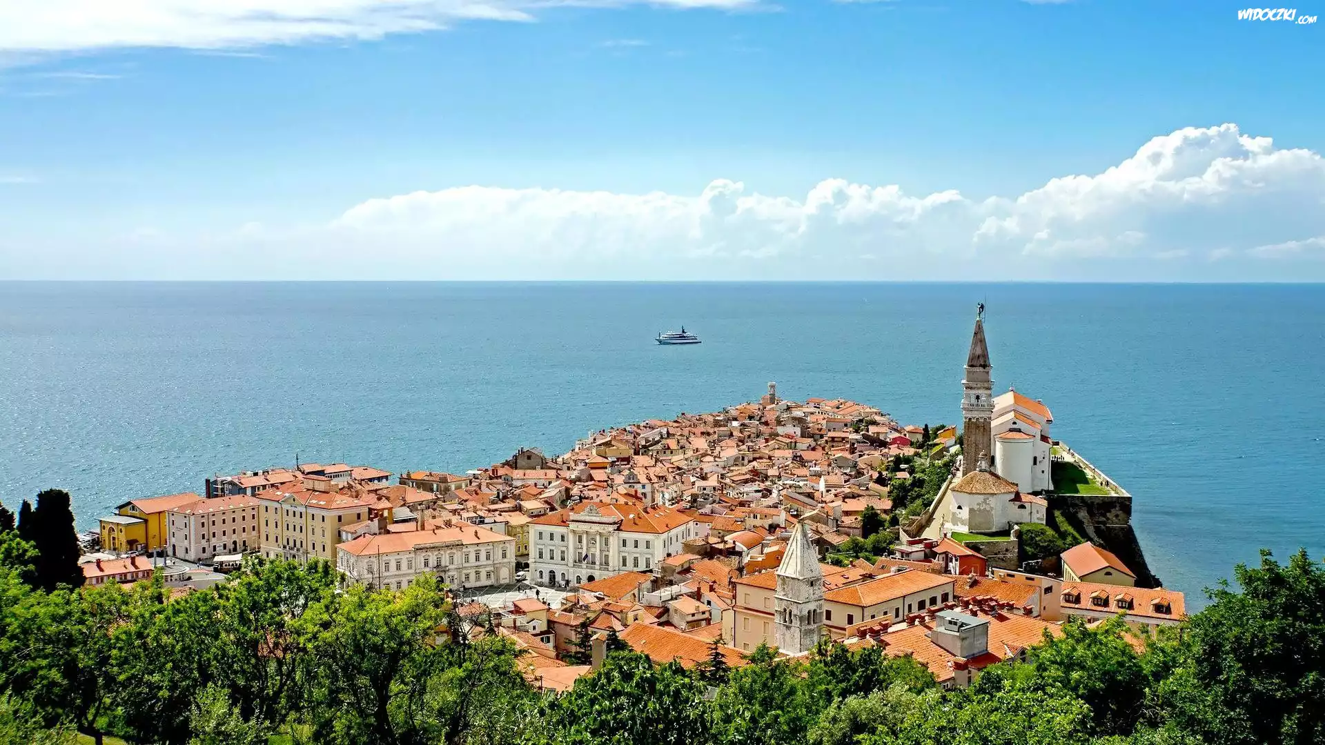 Zdjęcia, Morze, Statek, Panorama, Miasta