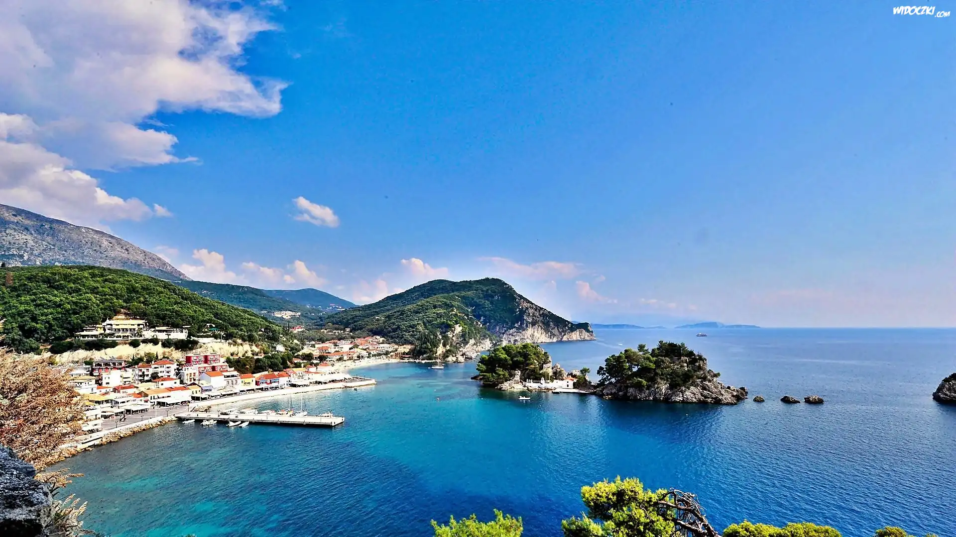 Zdjęcia, Morze, Wysepki, Wybrzeże, Wzgórza, Panorama, Miasteczka