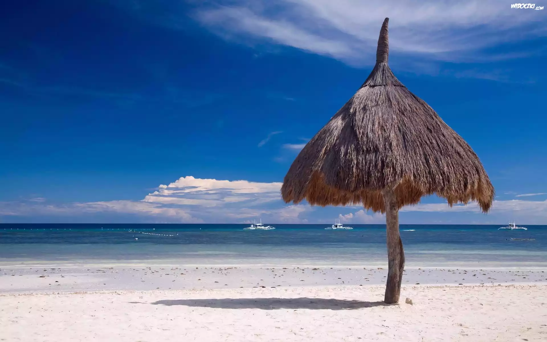 Zdjęcia, Morze, Plaża, Parasol, Niebo