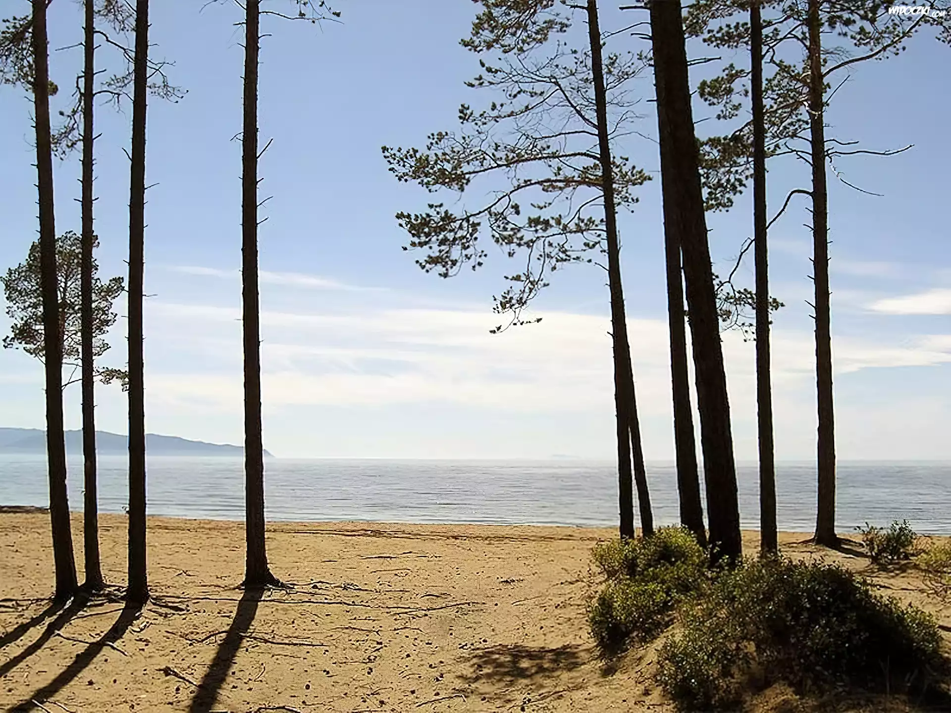 Zdjęcia, Plaża, Morze, Drzewa