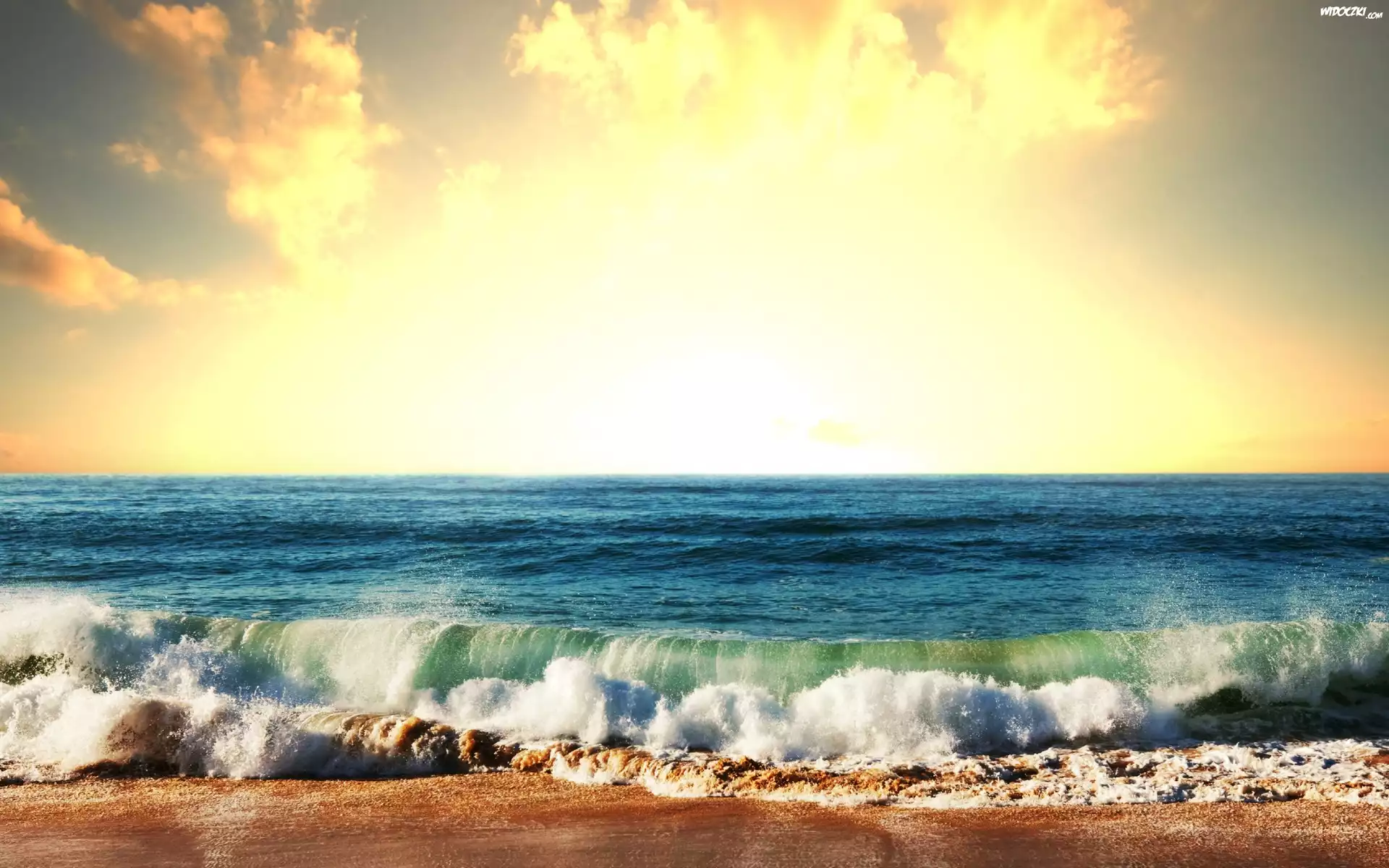 Zdjęcia, Morze, Fale, Plaża, Chmury