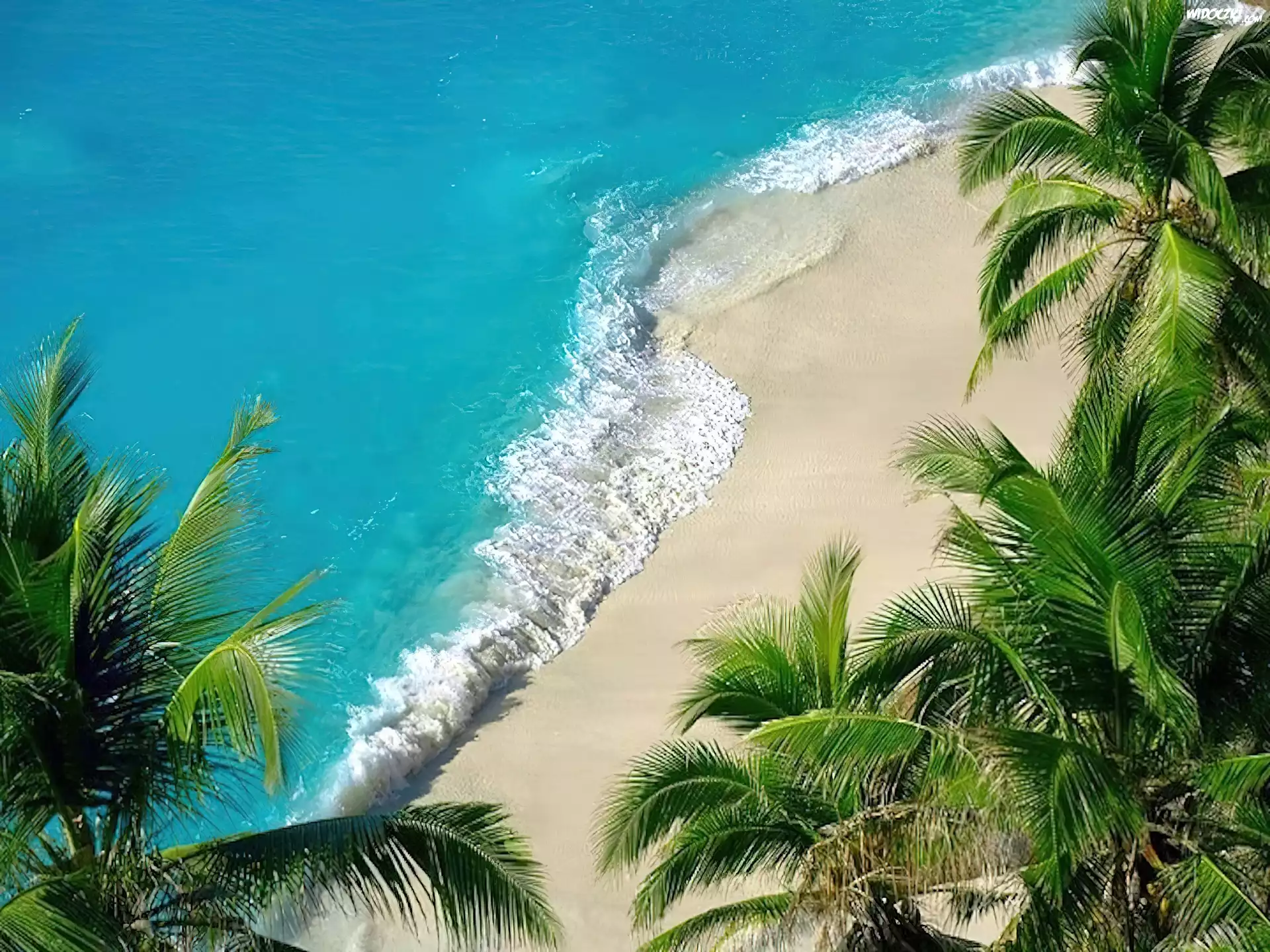 Zdjęcia, Morze, Fale, Plaża, Palmy