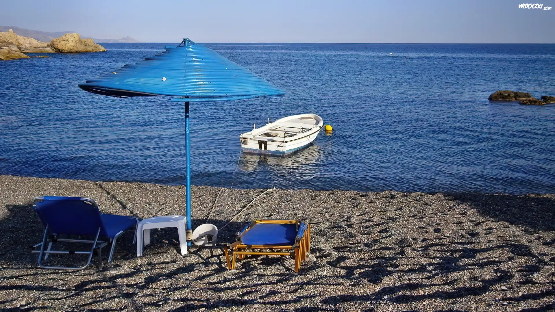 Zdjęcia, Morze, Łódka, Plaża, Parasol