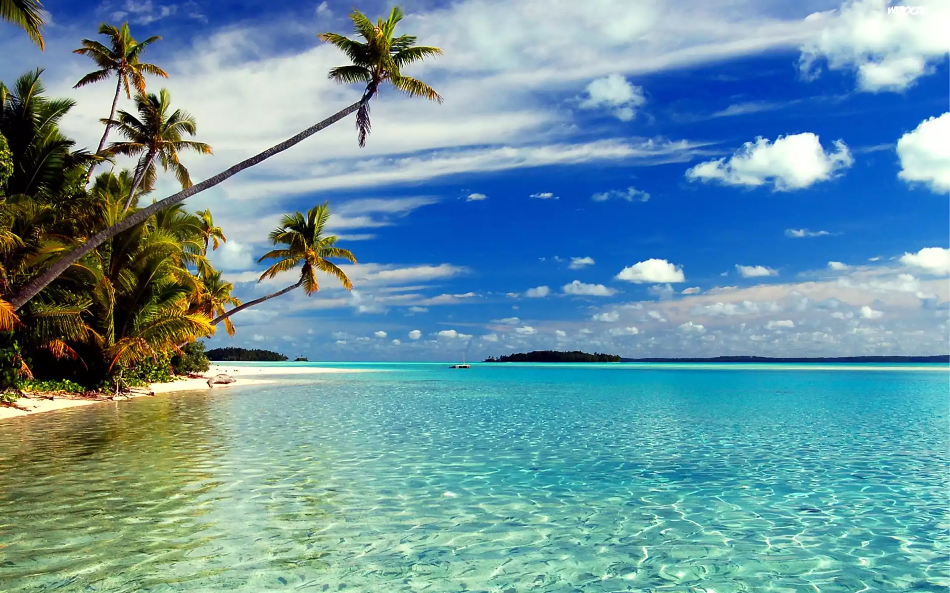 Zdjęcia, Nowa Zelandia, Wyspy Cooka, Plaża, Morze, Palmy