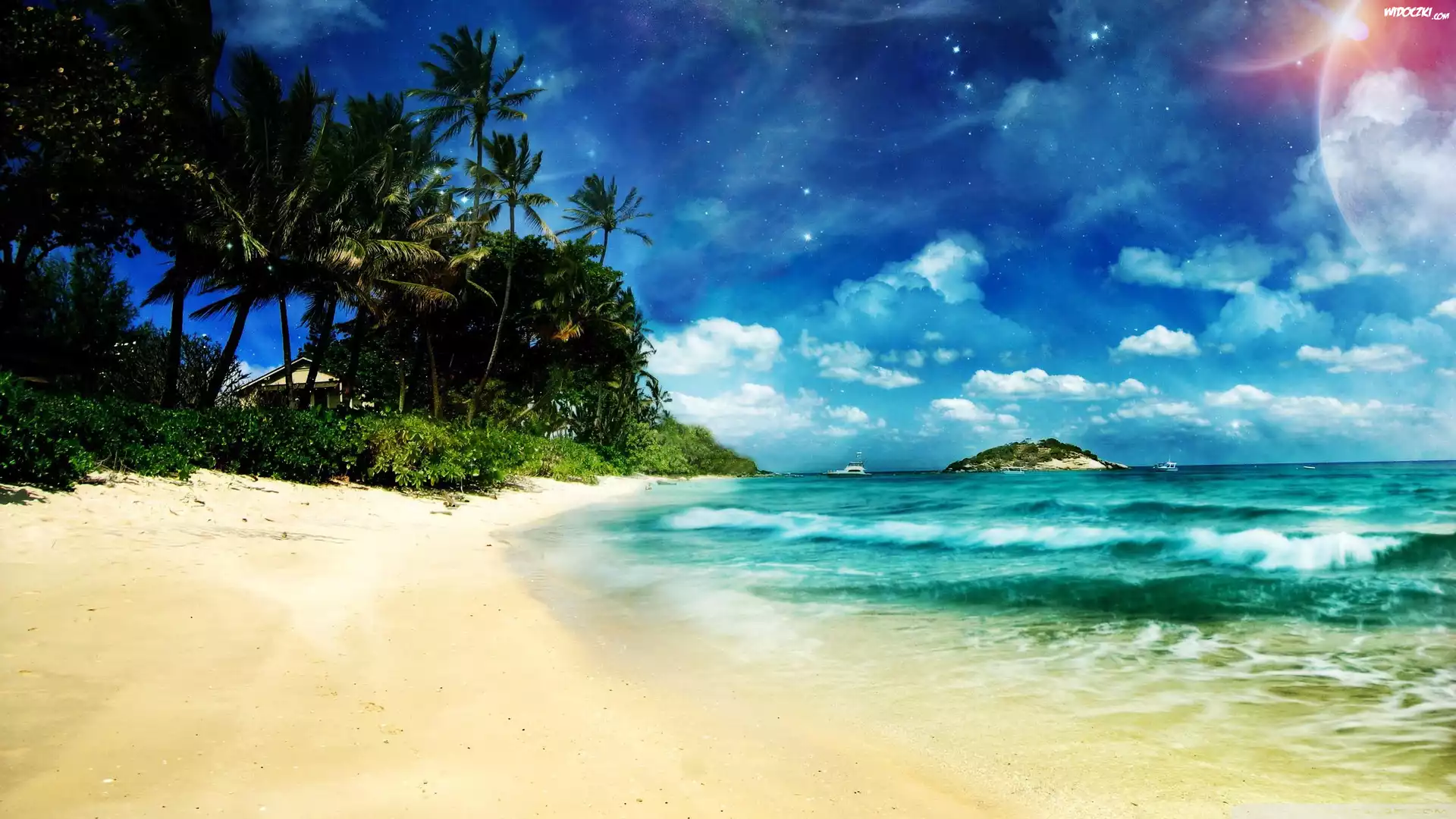 Zdjęcia, Plaża, Morze, Palmy
