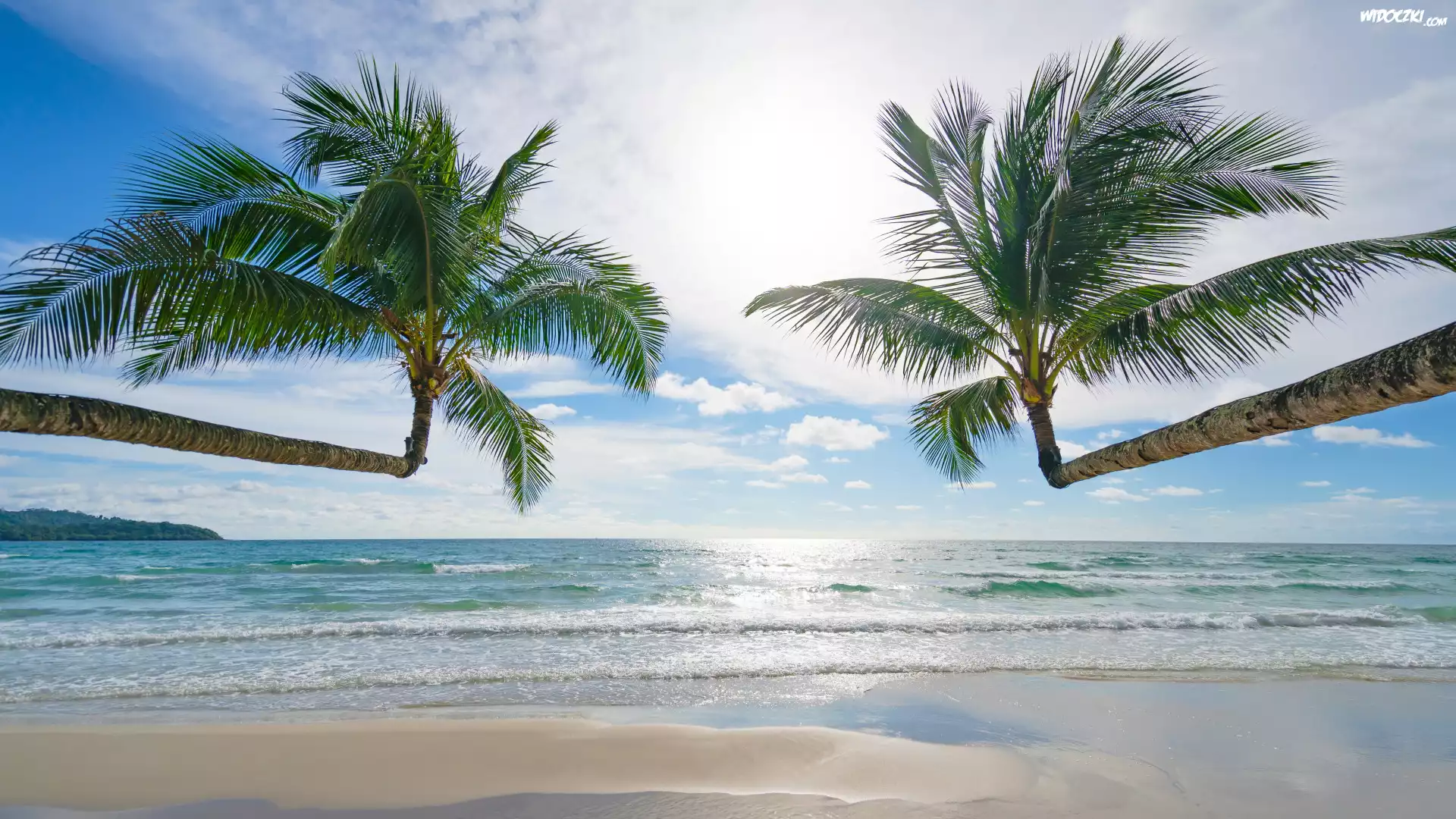 Zdjęcia, Plaża, Dwie, Palmy, Morze