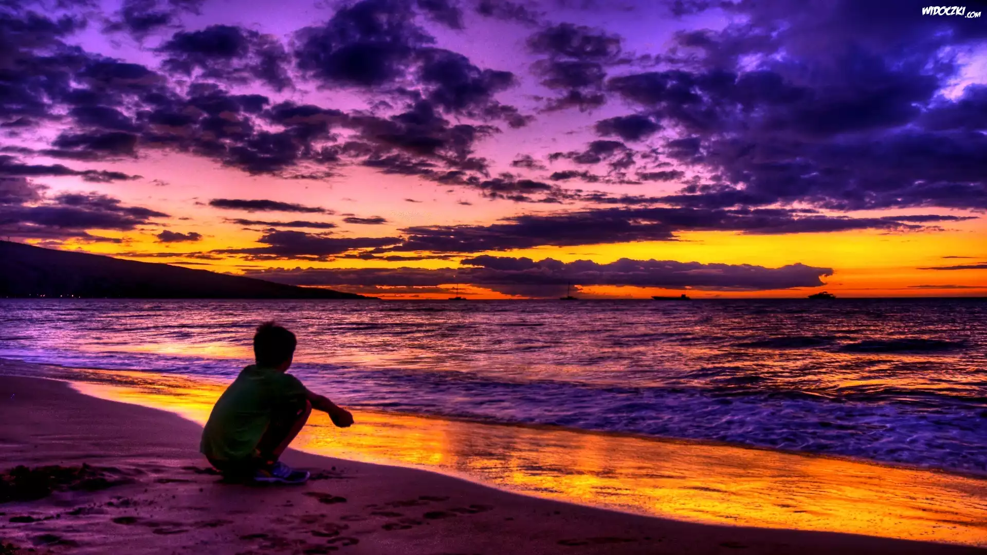 Zdjęcia, Morze, Zachód, Plaża, Chłopiec