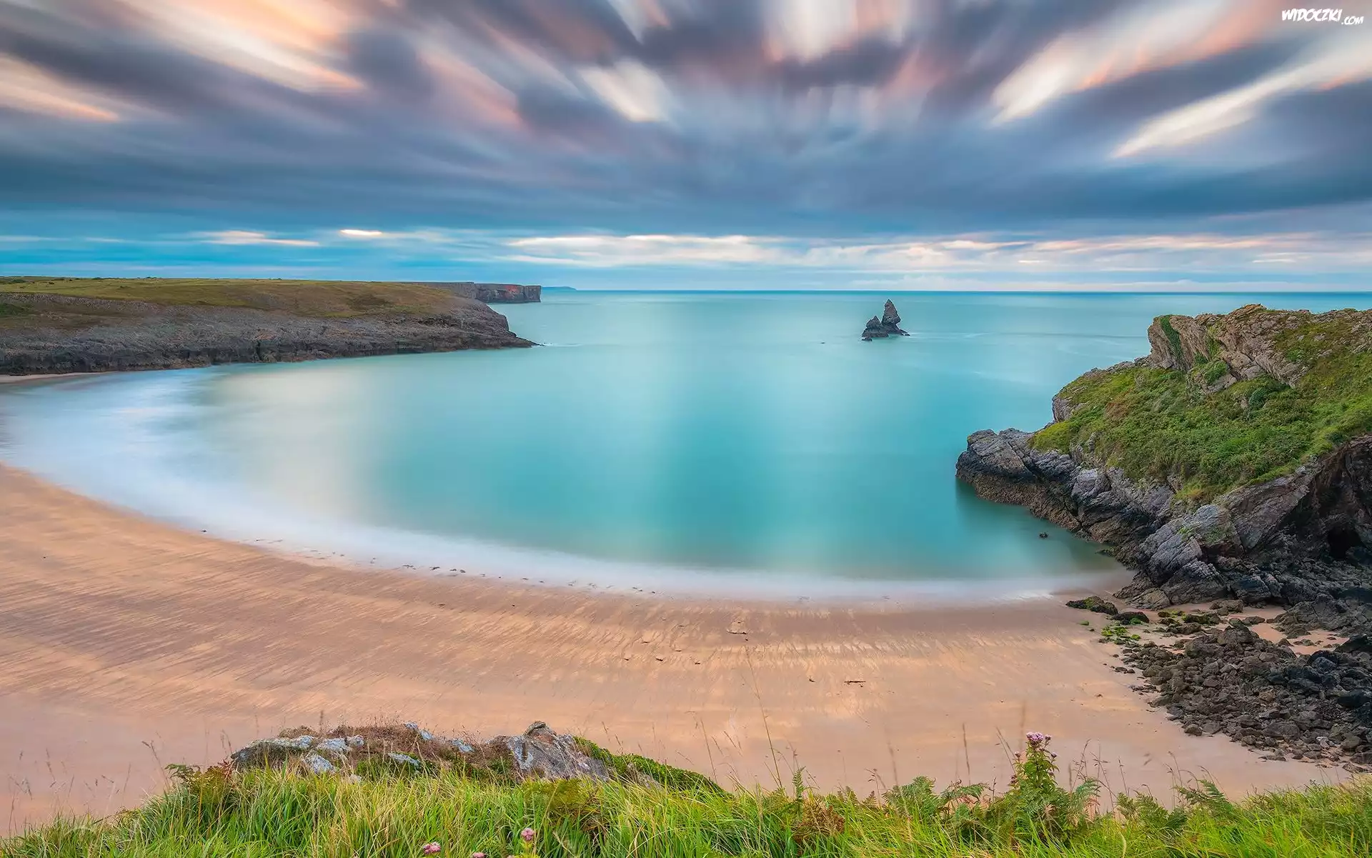 Morze, Zatoka, Plaża, Chmury