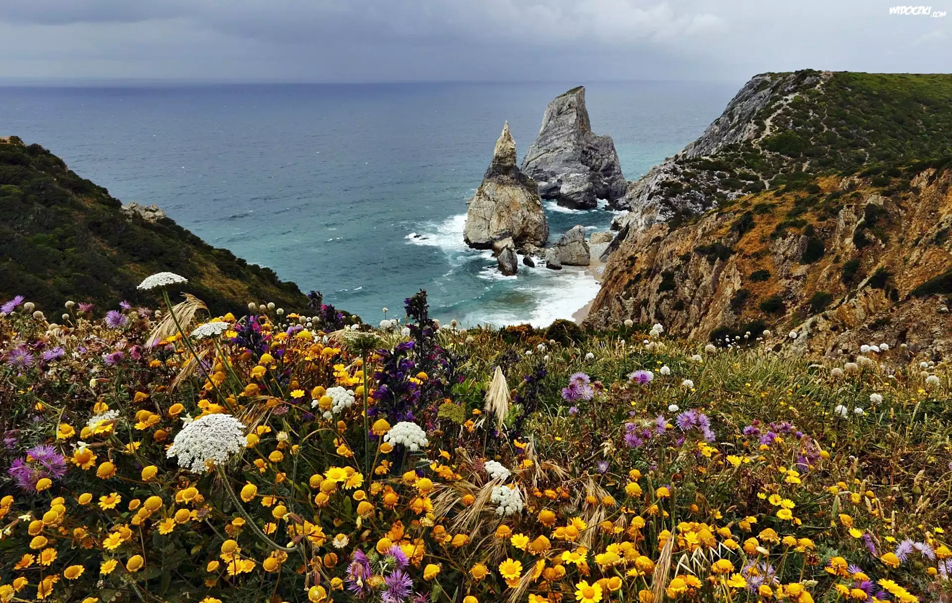 Morze, Wybrzeże, Skały, Polne, Kwiaty