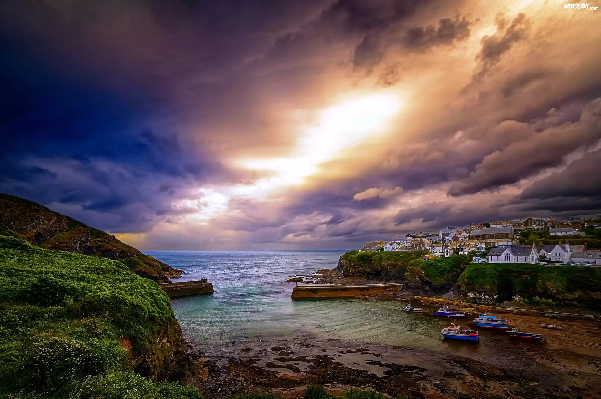 Zdjęcia, Morze, Chmury, Port, Anglia