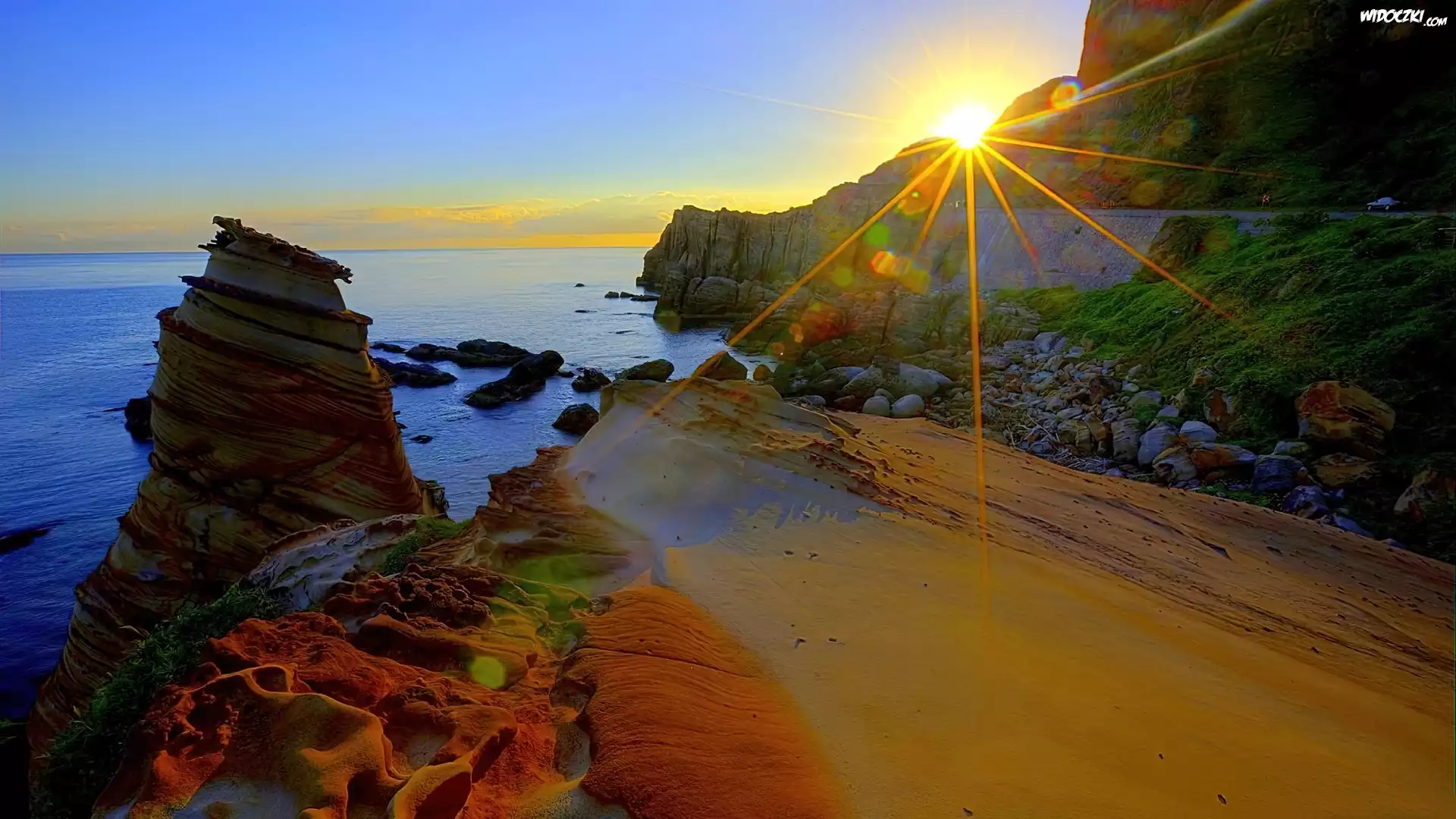 Zdjęcia, Morze, Skały, Klif, Promienie, Słońca