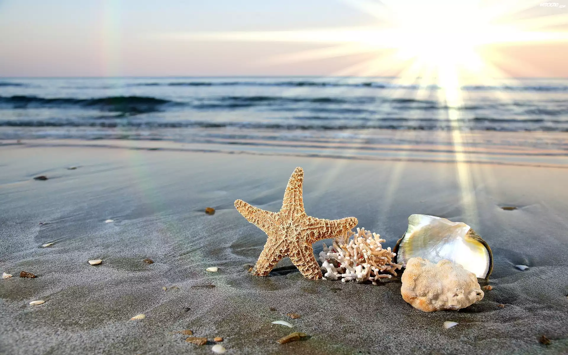 Zdjęcia, Morze, Muszelki, Promienie, Słońca