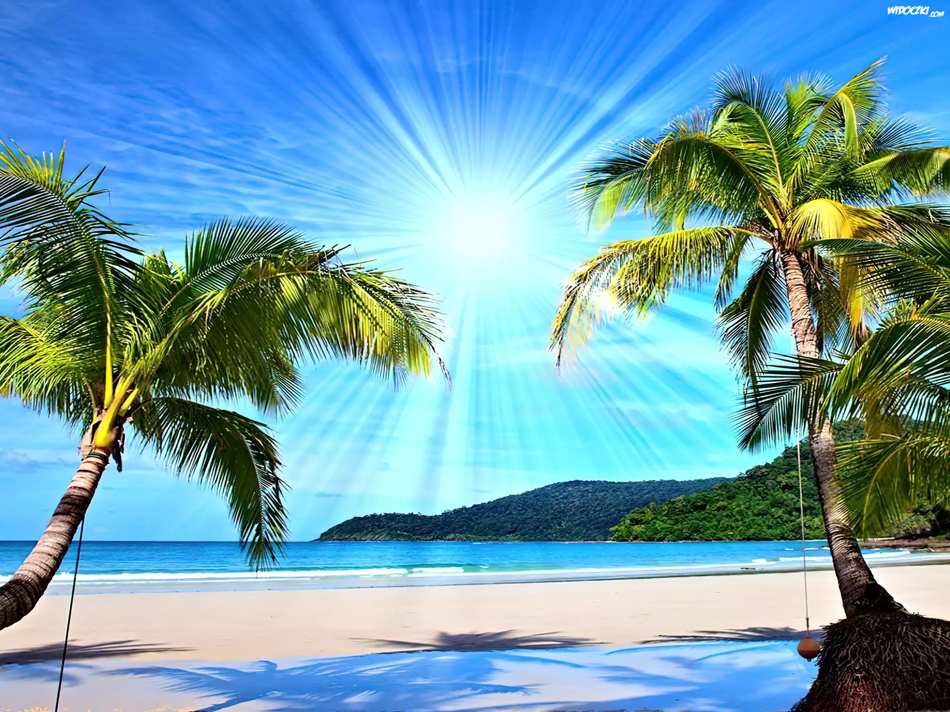 Morze, Palmy, Promienie, Słoneczne