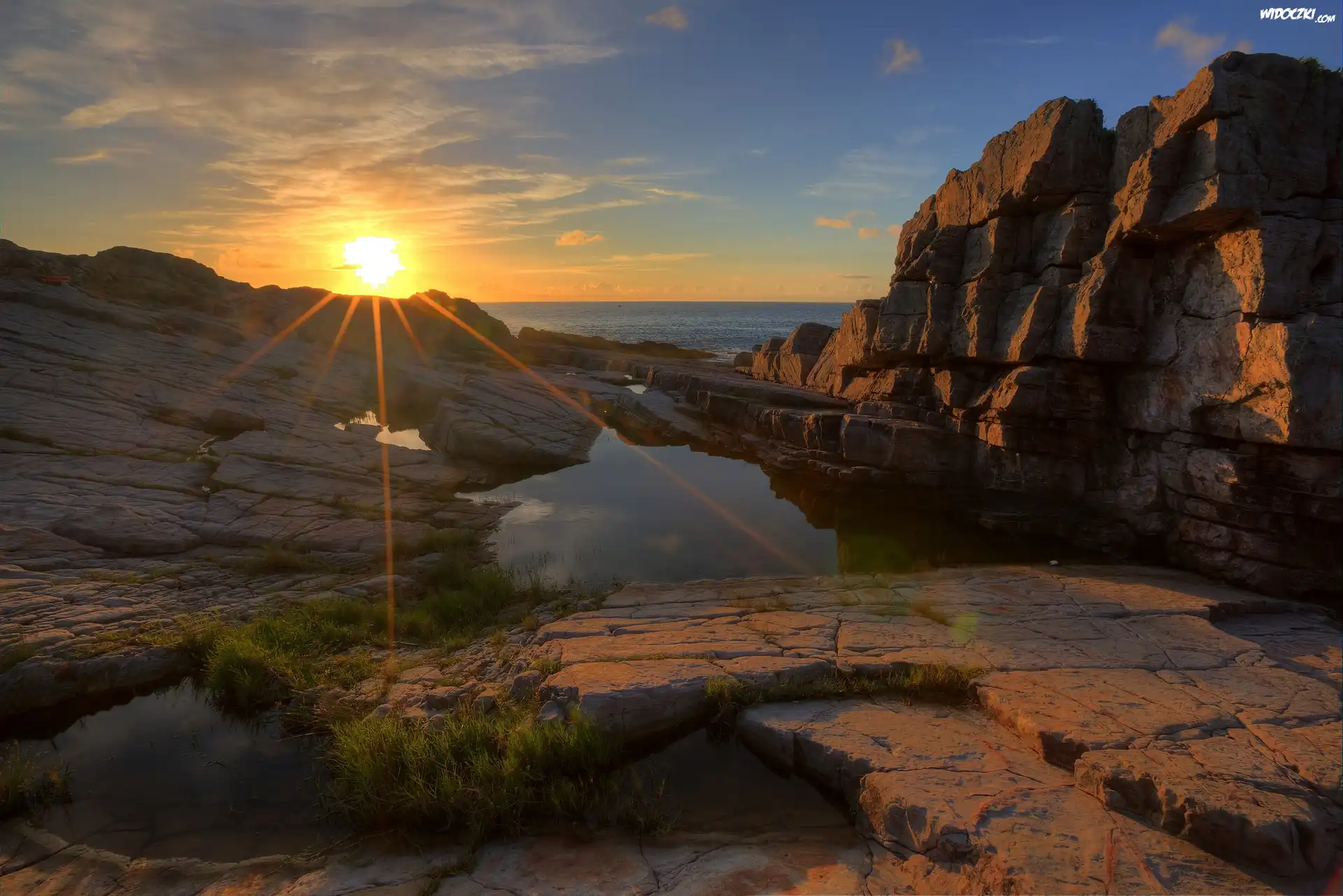 Zdjęcia, Morze, Wybrzeże, Skały, Promienie, Słońca