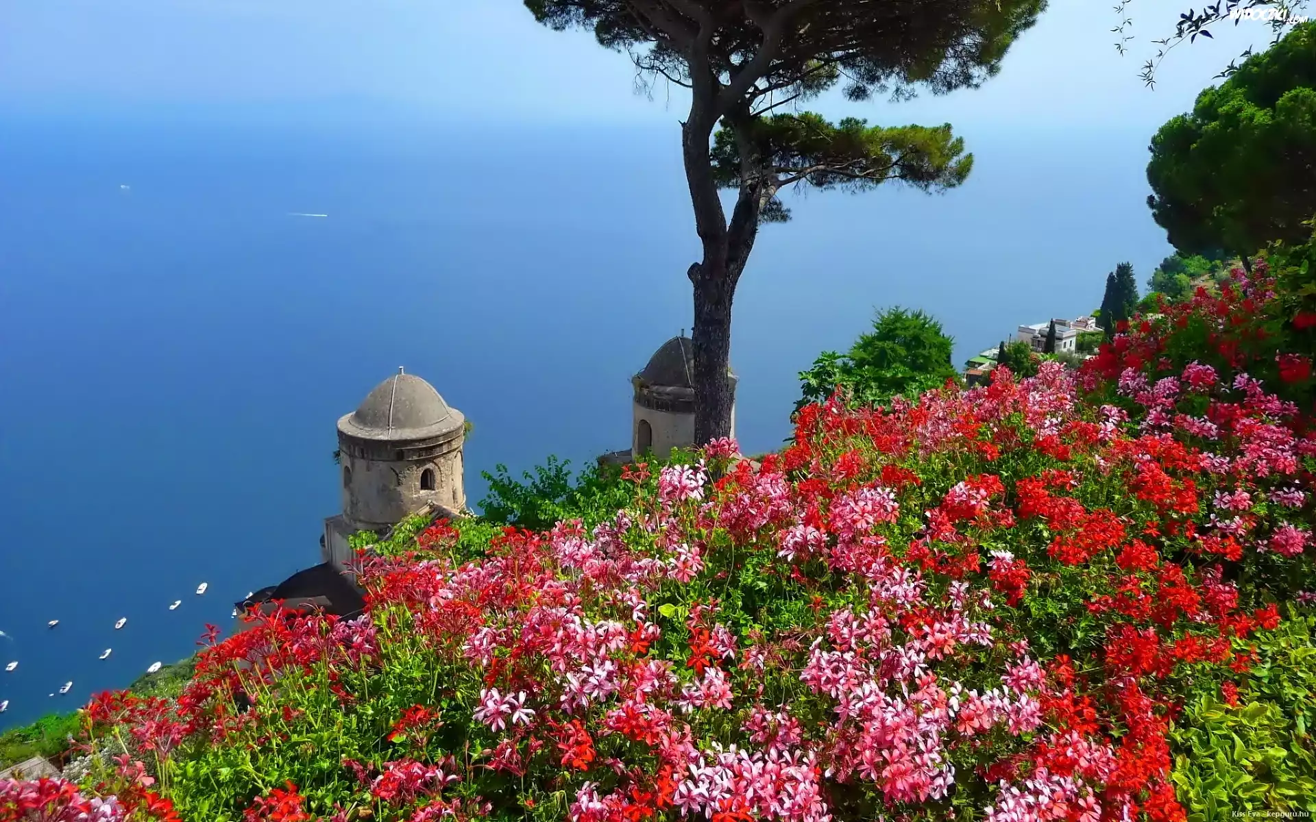 Zdjęcia, Morze, Kwiaty, Ravello, Włochy
