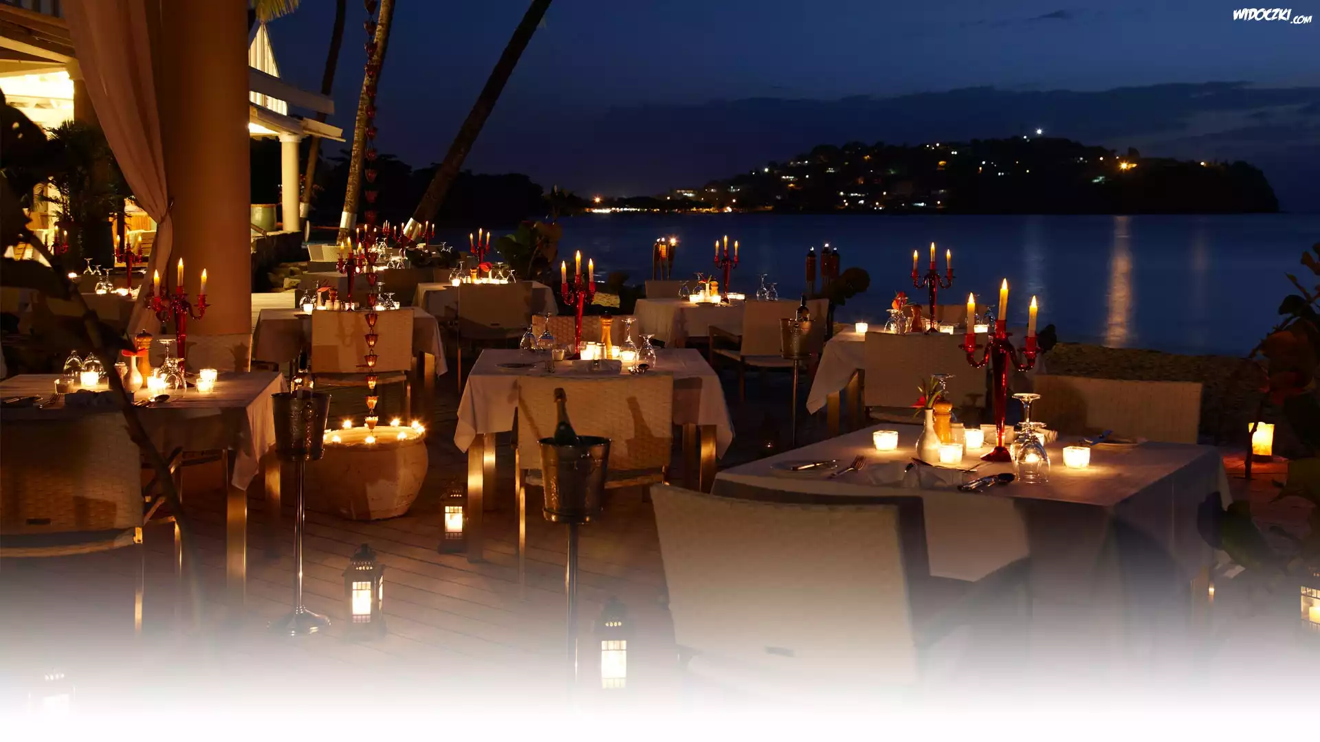 Zdj臋cia, Restauracja, Morze, Noc