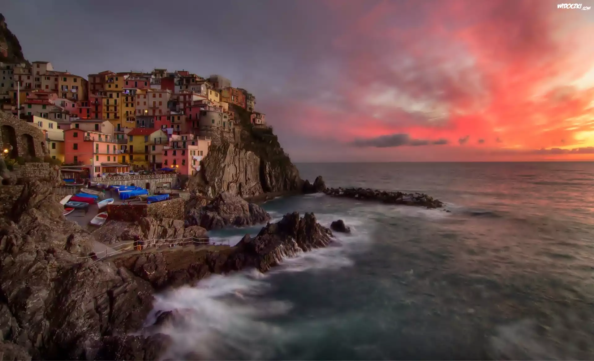 Zdjęcia, Morze, Skały, Domy, Miasto, Riomaggiore, Liguria