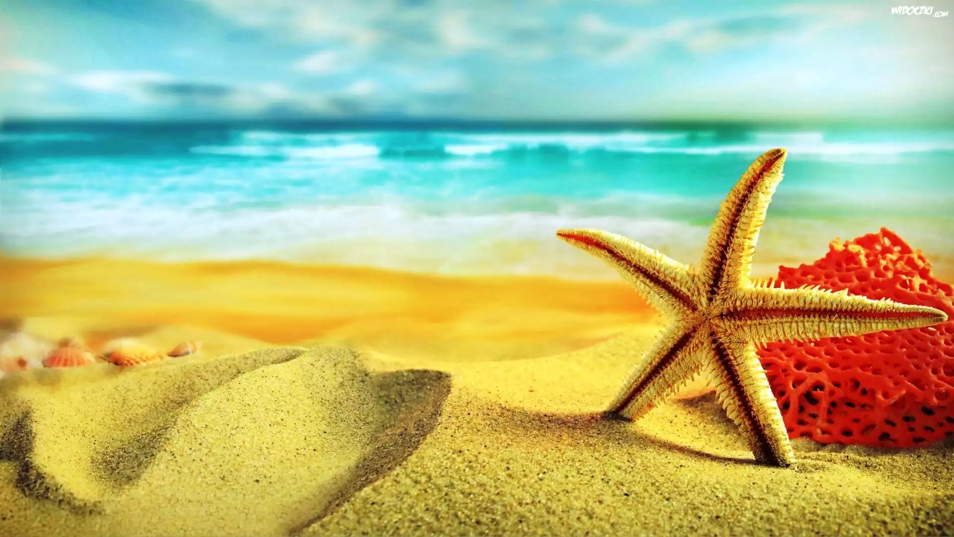 Zdjęcia, Morze, Plaża, Rozgwiazda, Koral