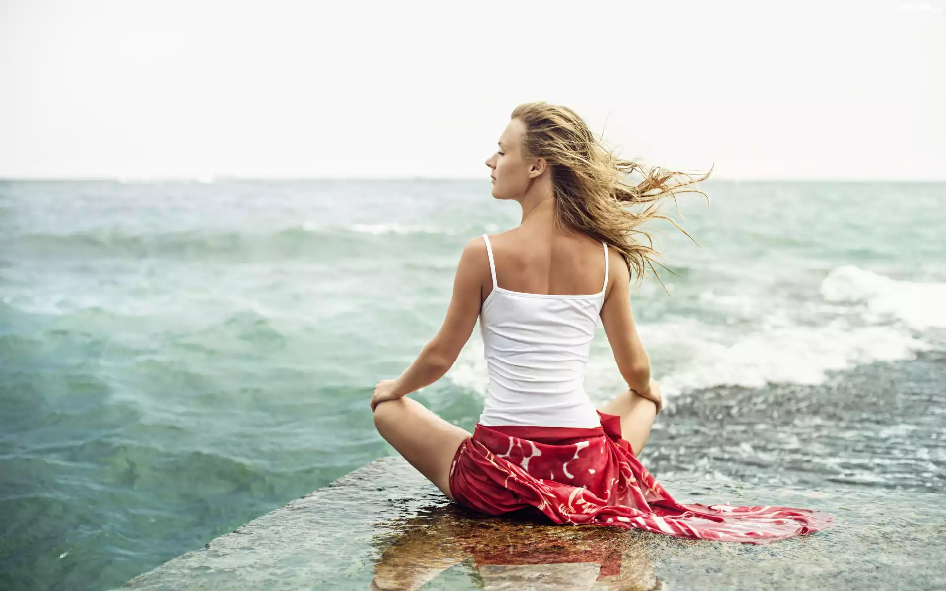 Zdjęcia, Morze, Kobieta, Rozwiane, Włosy