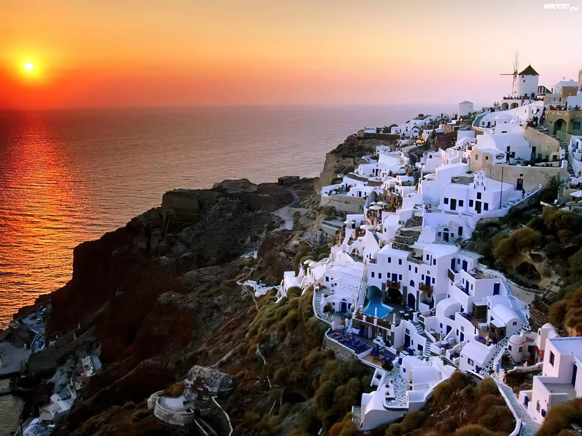 Zdjęcia, Morze, Zachód Słońca, Santorini, Grecja