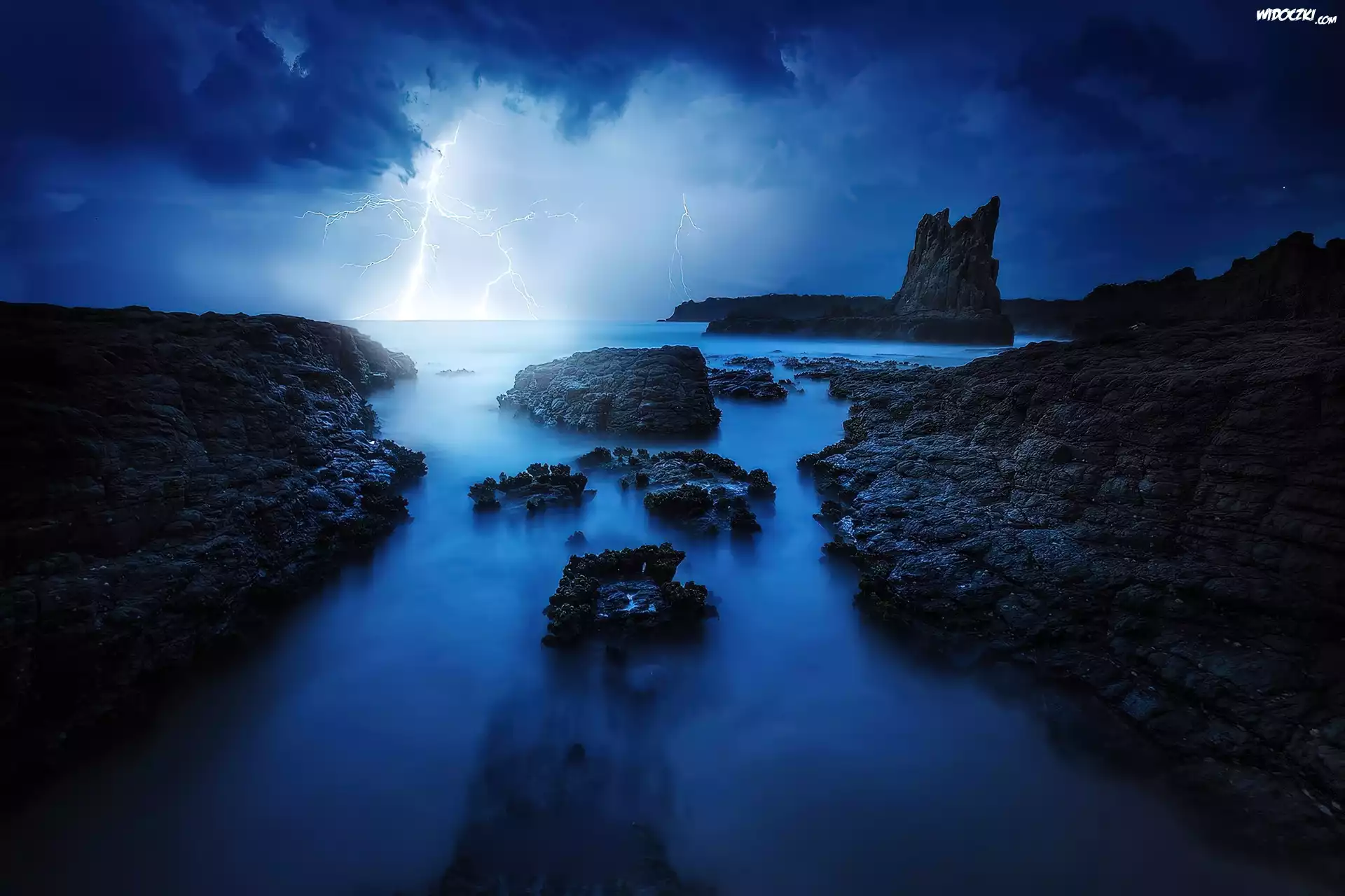 Skały, Morze, Błyskawica