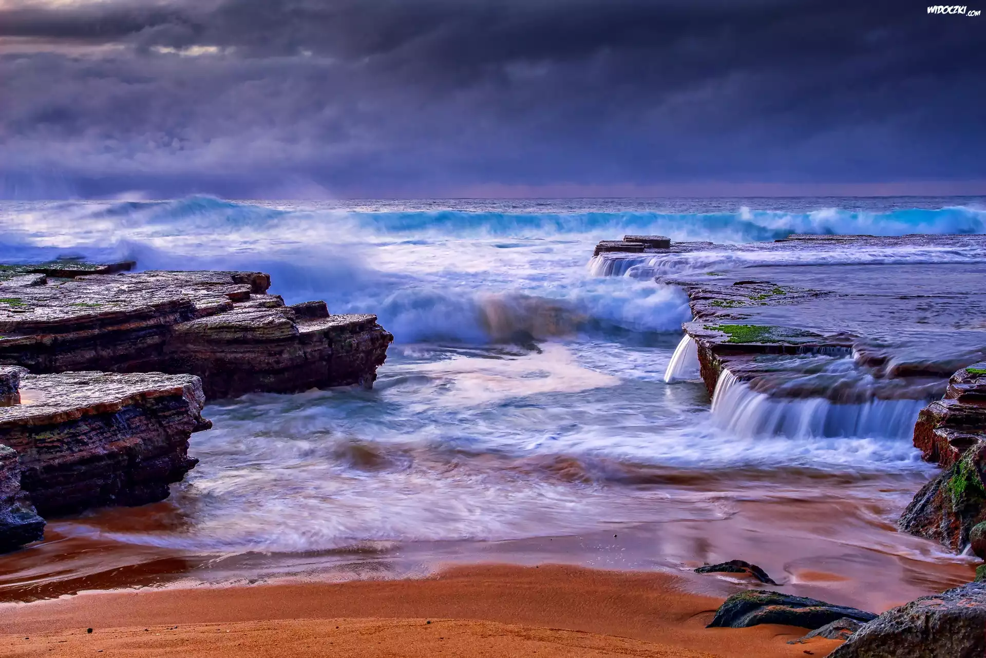 Zdjęcia, Morze, Fale, Skały, Brzeg