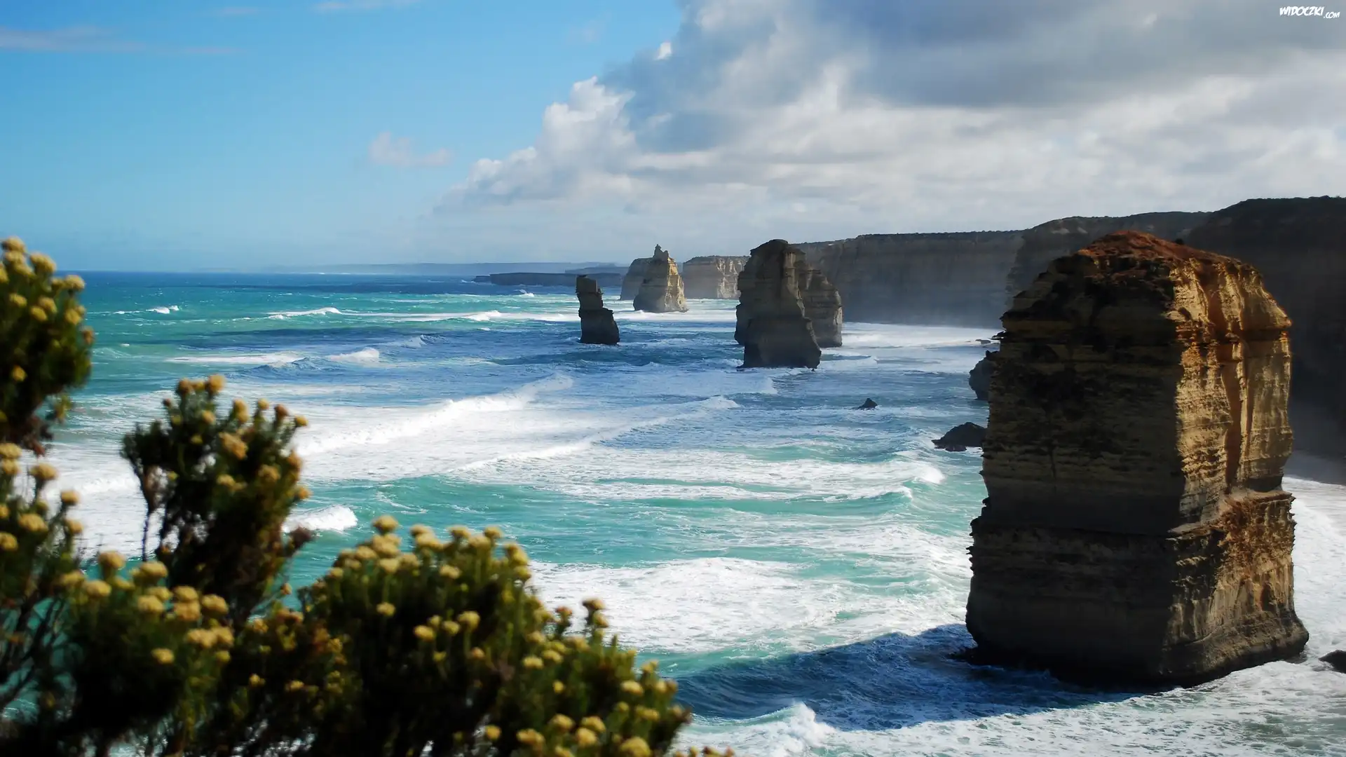 Zdjęcia, Morze, Klify, Skały, Rośliny