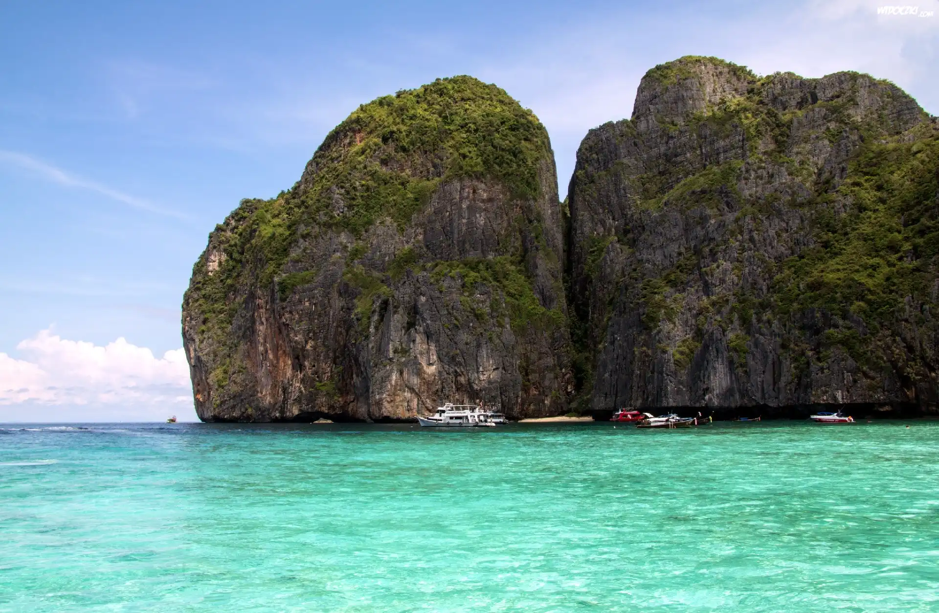 Zdjęcia, Skały, morze, Łódki