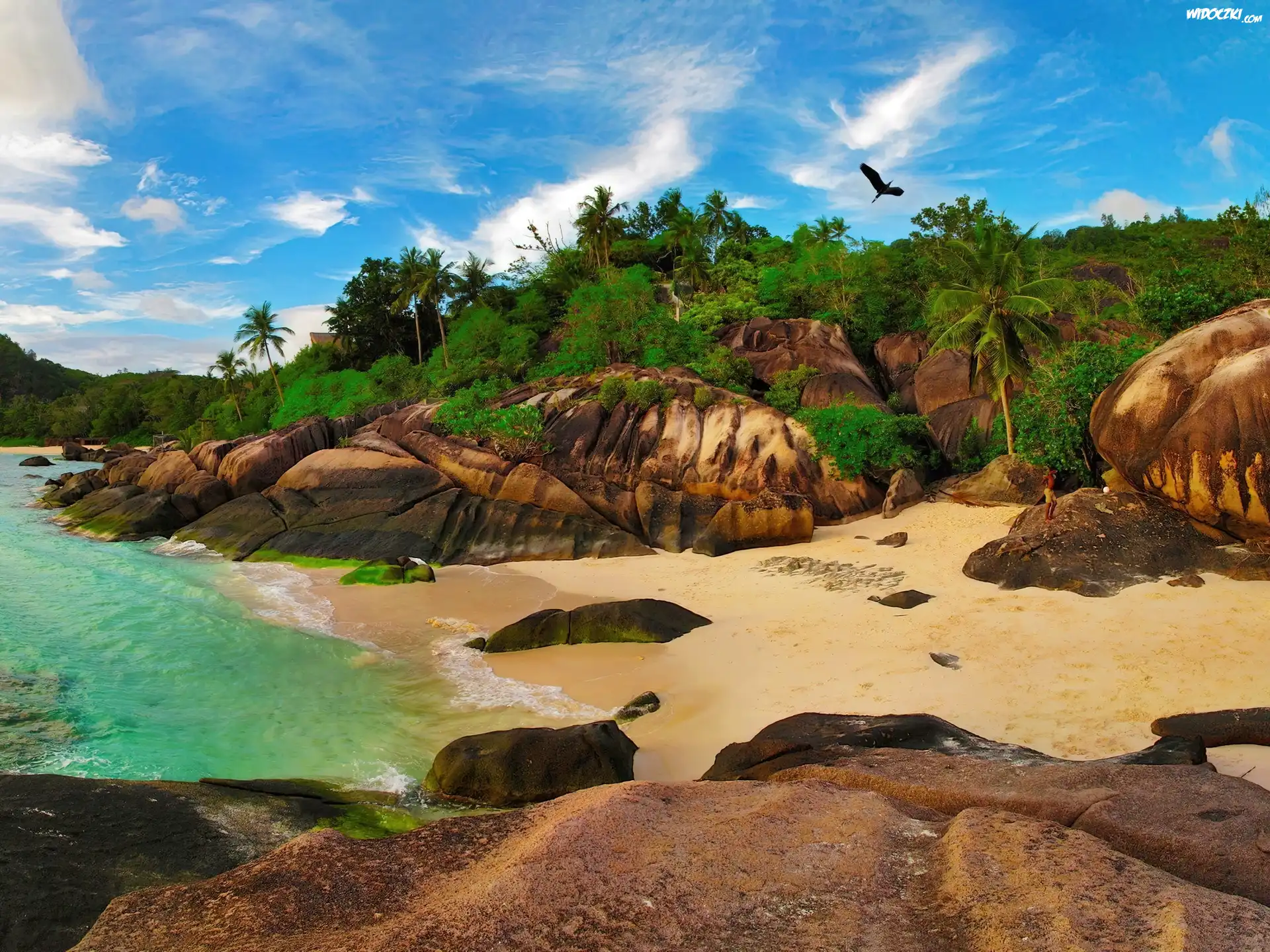 Zdjęcia, Morze, Plaża, Skały, Tropik