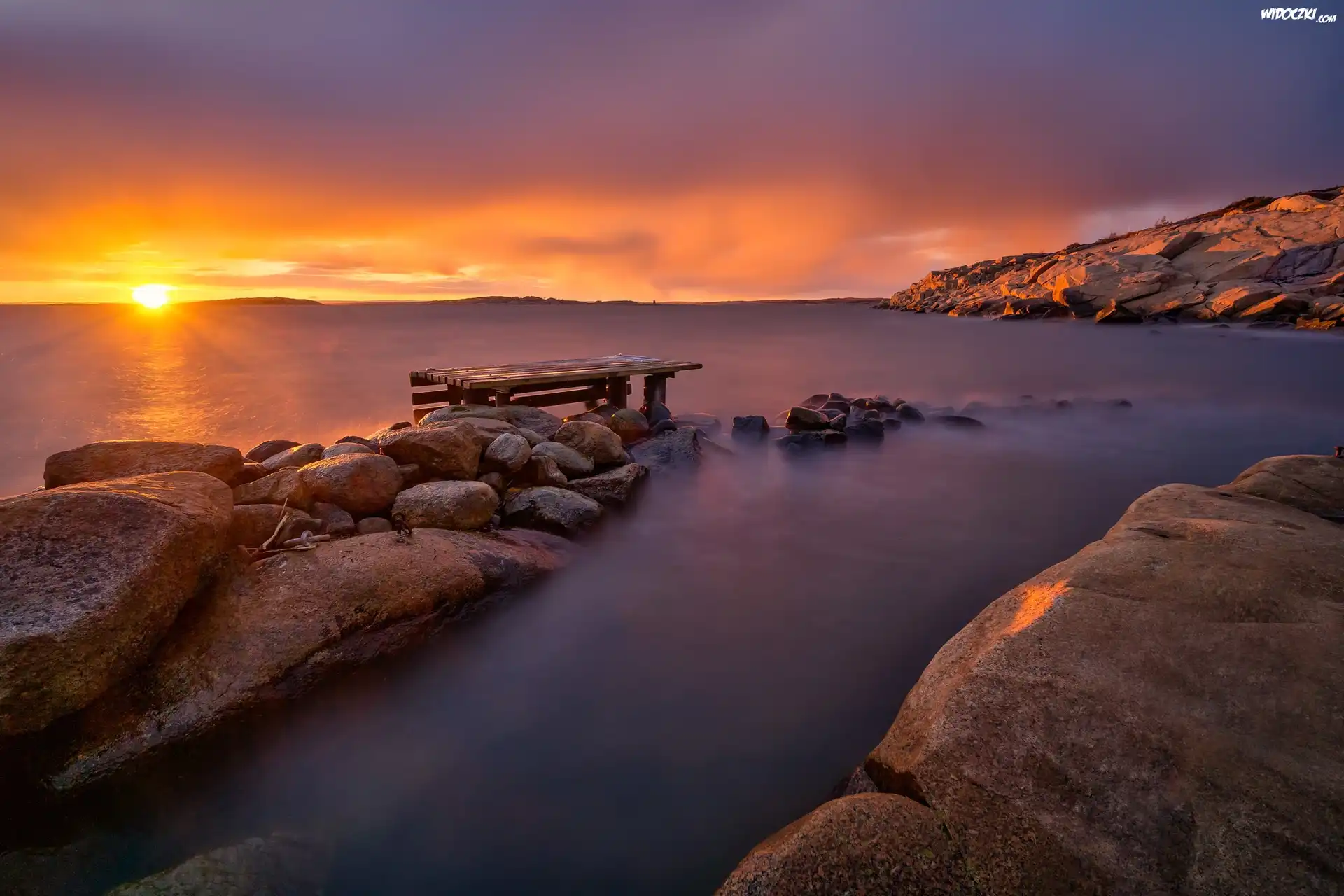 Zdjęcia, Morze, Zachód, Słońca, Skały, Kamienie