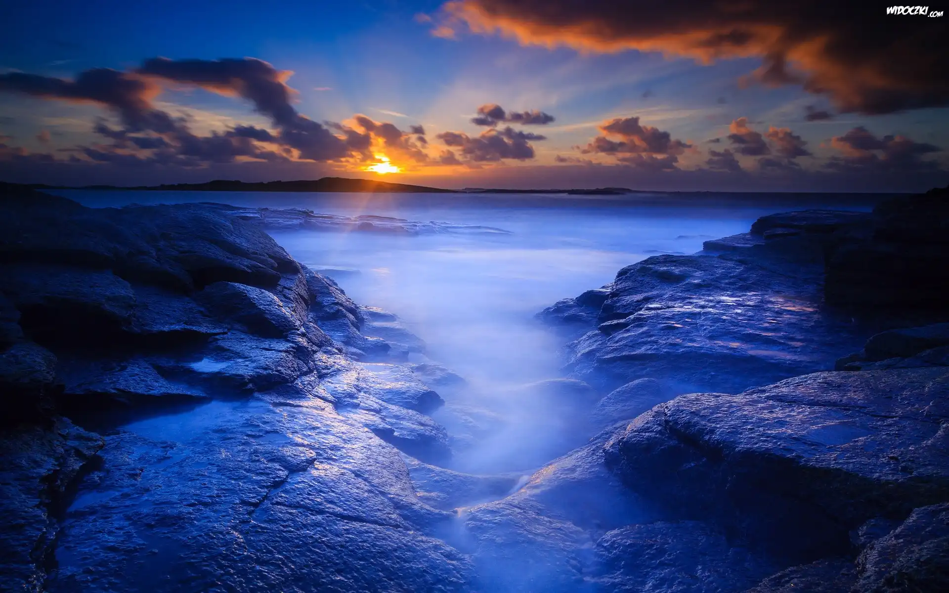Zdjęcia, Skały, Morze, Słońce