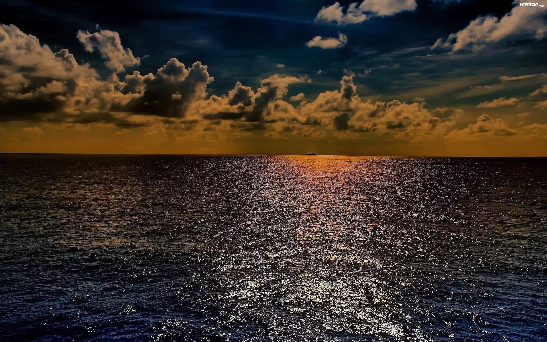 Morze, Niebo, Chmury, Zachód, Słońca, Odbicie