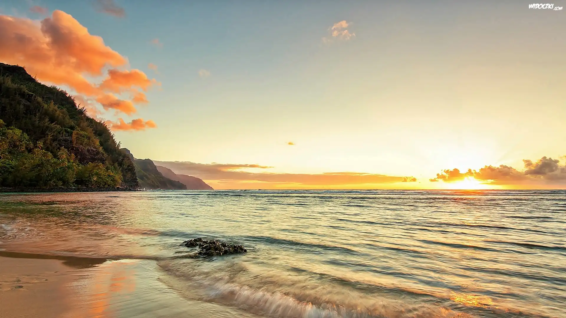 Zdjęcia, Morze, Plaża, Kauai, Promienie, Słońca, Hawaje