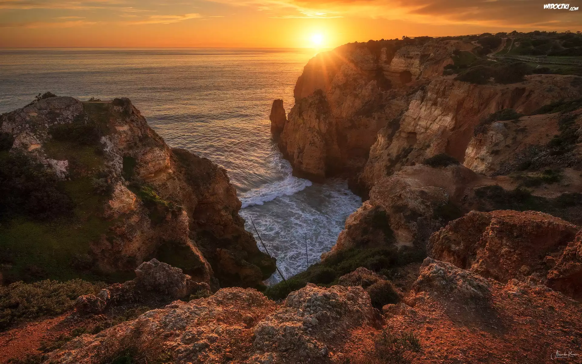 Zdjęcia, Portugalia, Algarve, Skały, Morze, Wschód słońca