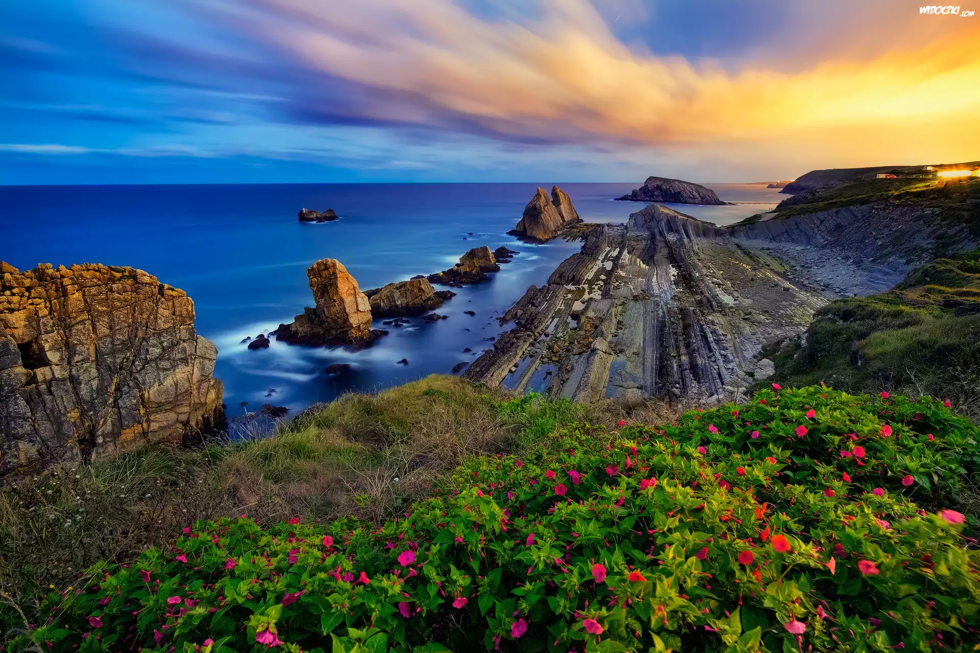 Zdjęcia, Morze, Kamienie, Skały, Wschód Słońca, Wybrzeże
