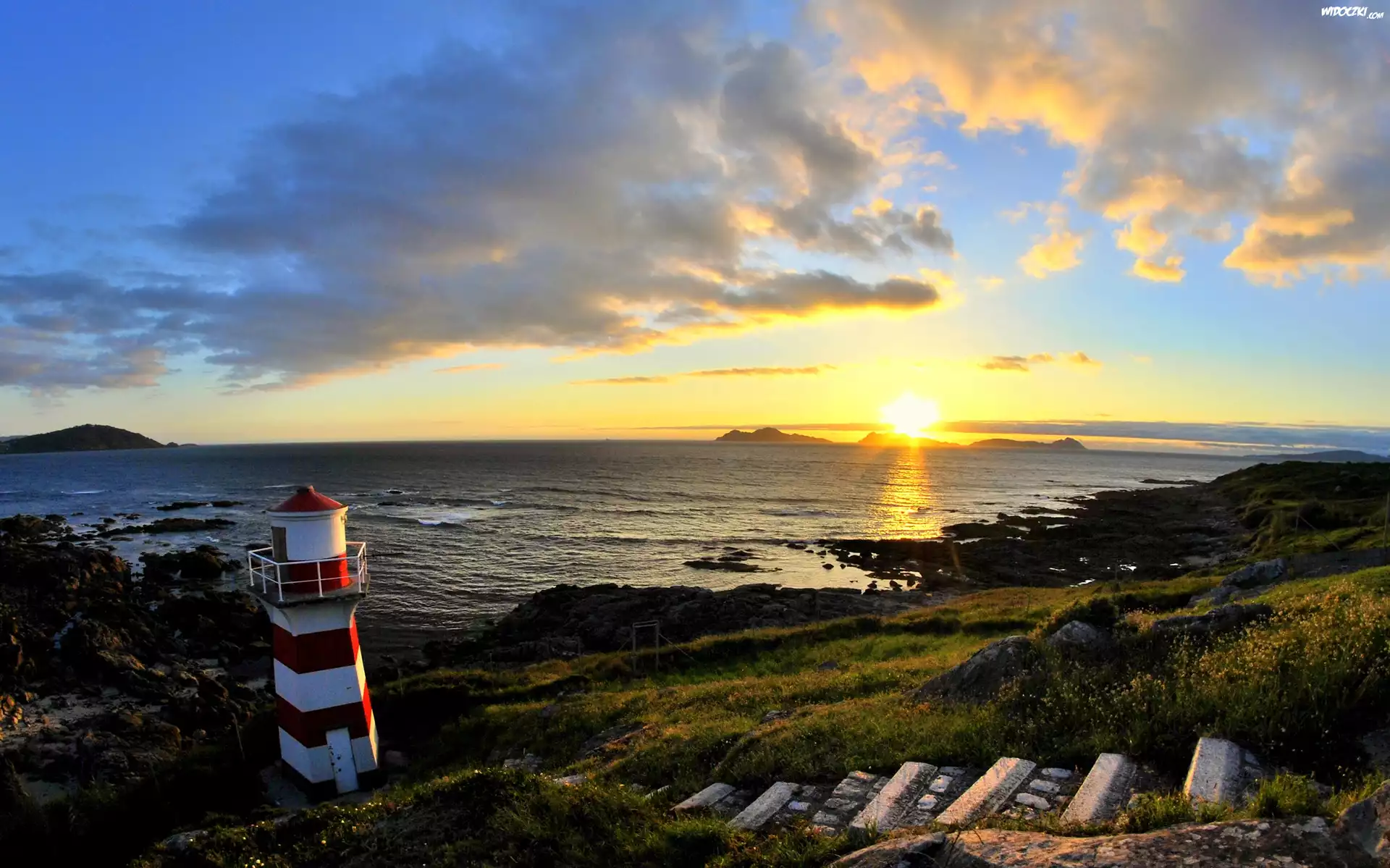 Zdjęcia, Morze , Wschód słońca, Latarnia