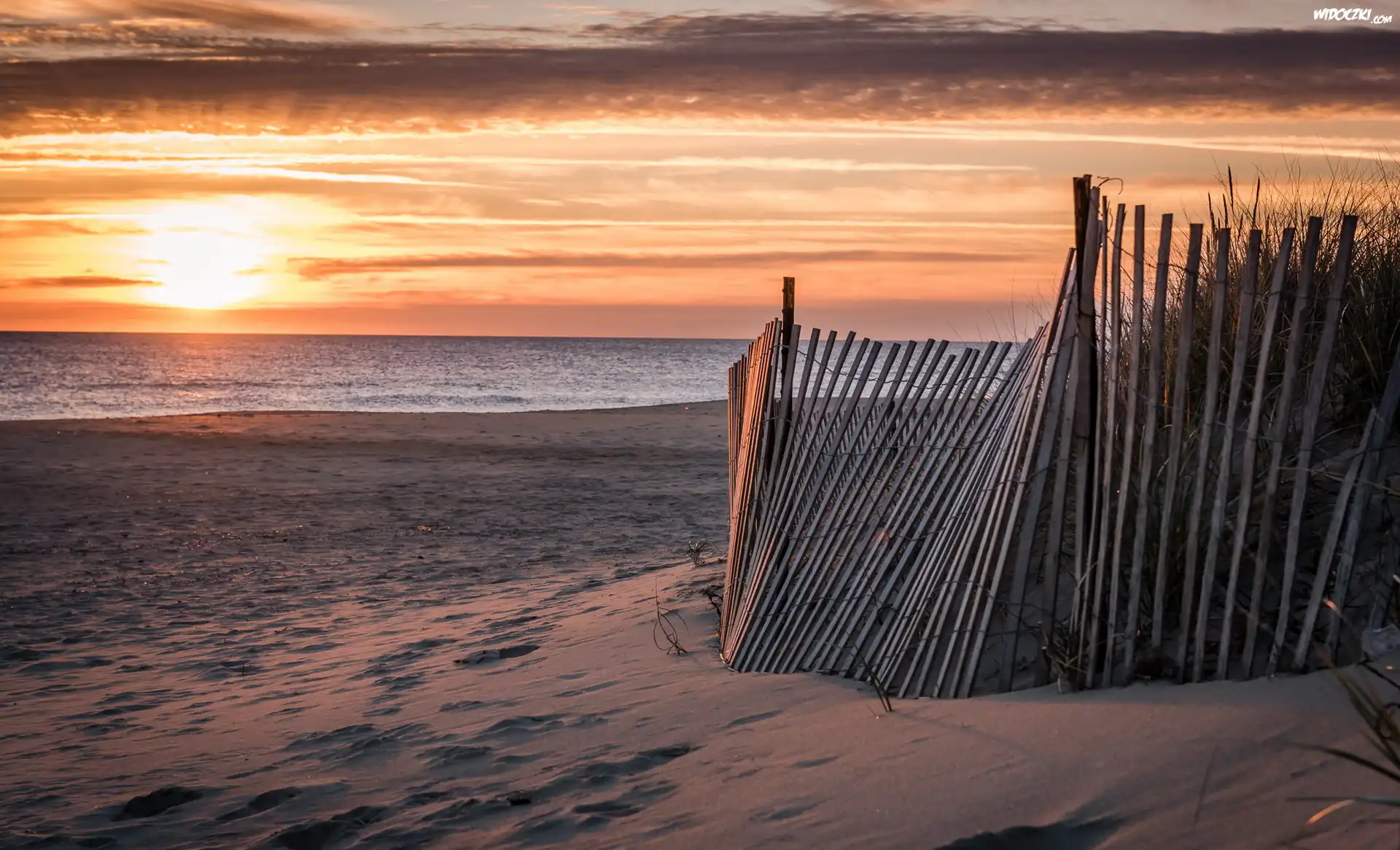 Zdjęcia, Morze, Plaża, Wschód Słońca, Płot