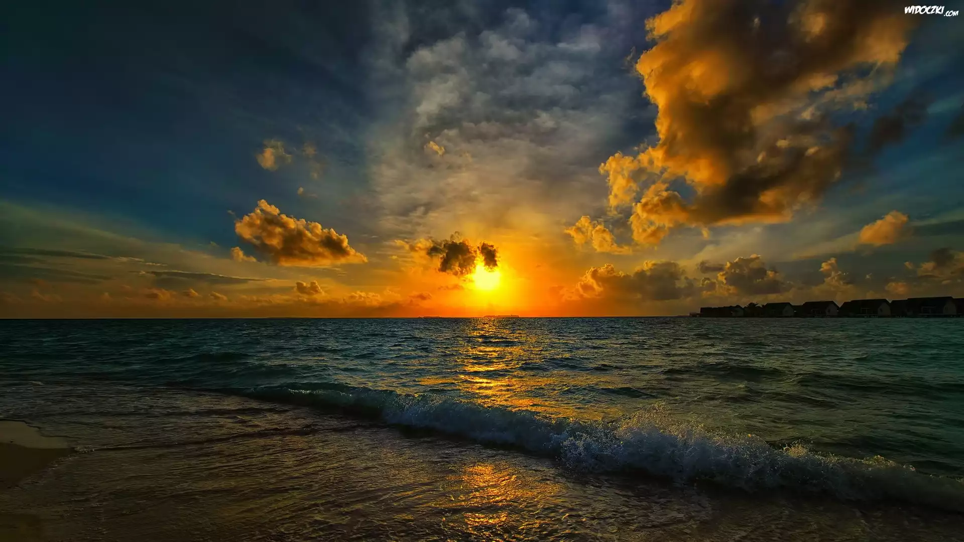 Morze, Zachód słońca, Chmury
