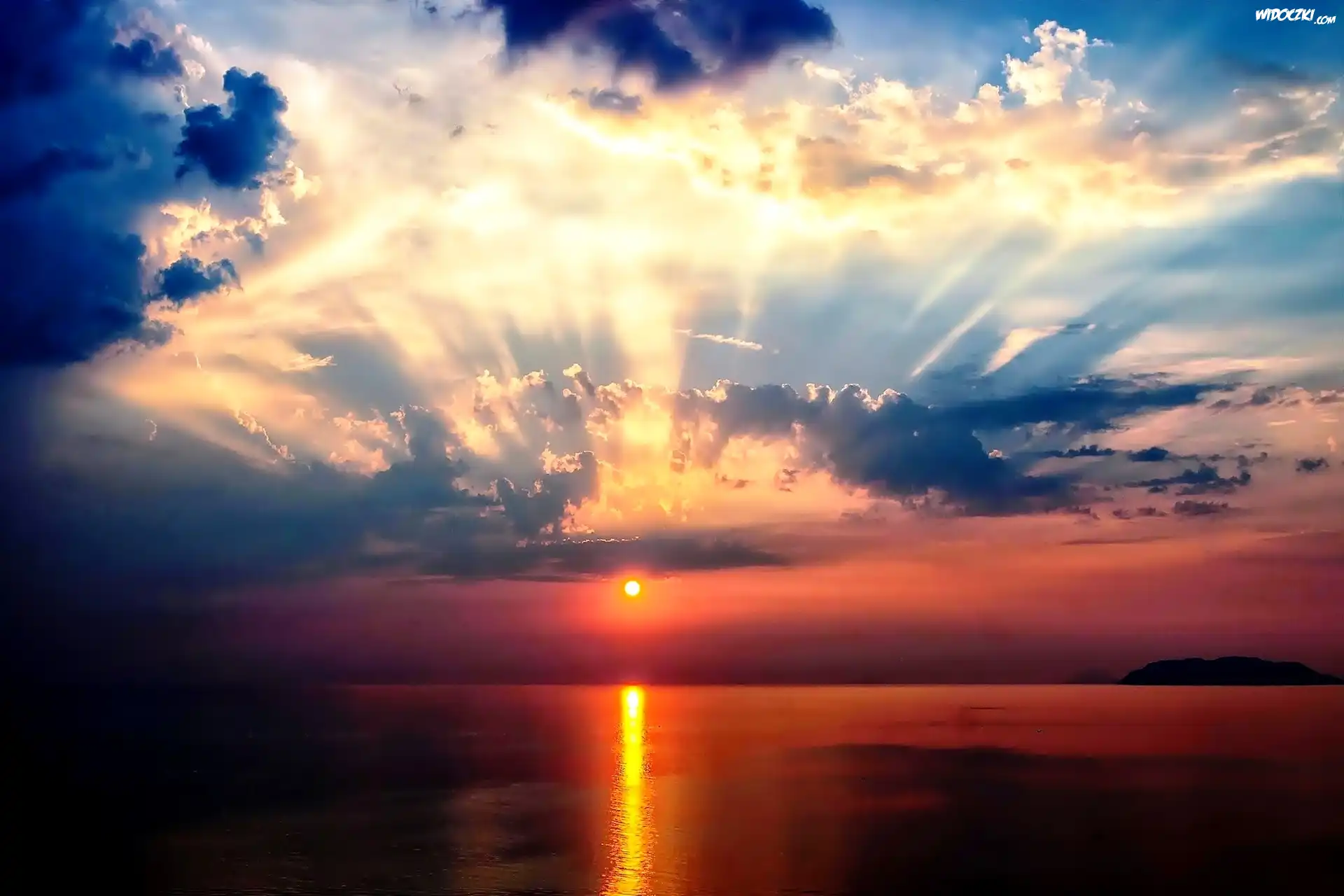 Zdjęcia, Morze, Zachód, Słońca, Chmury
